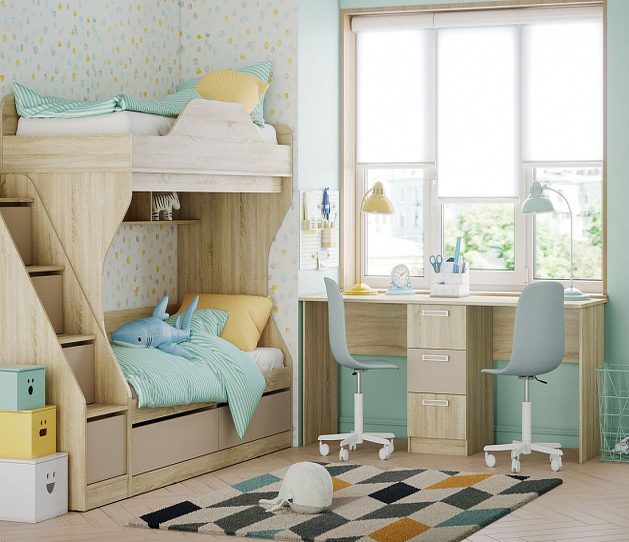 Стол обеспечит 2-а комфортных места для учебы.