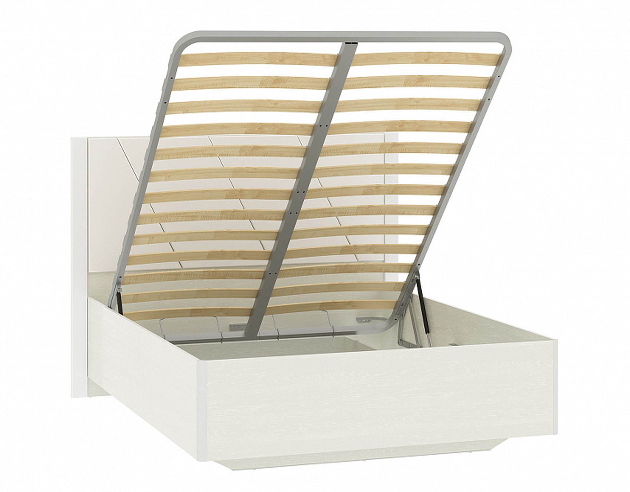 Конструкция с 1-ой большой головной спинкой. Ортопедическое основание, механизм подъема и ящик для белья в комплекте.