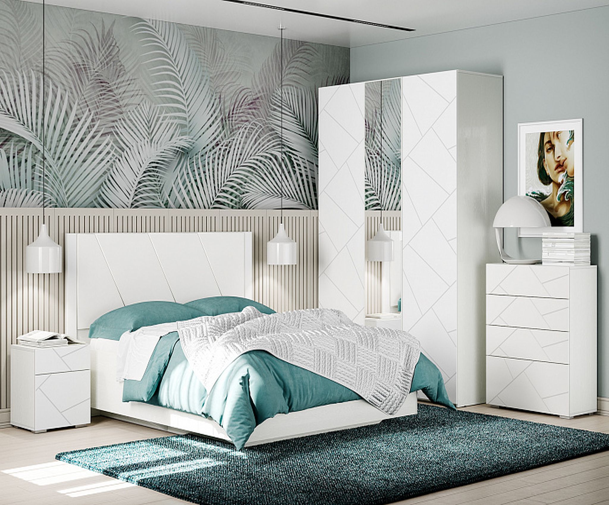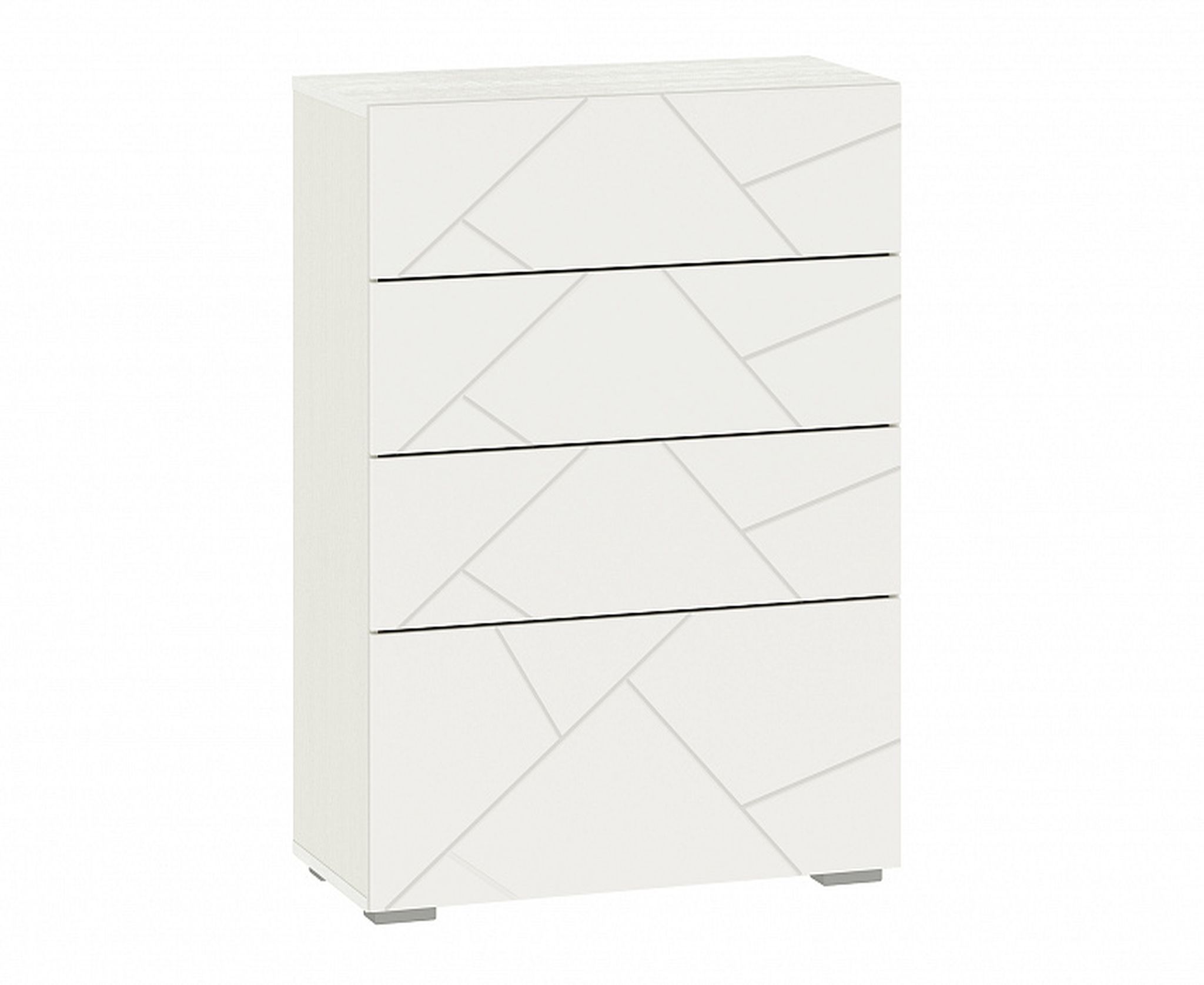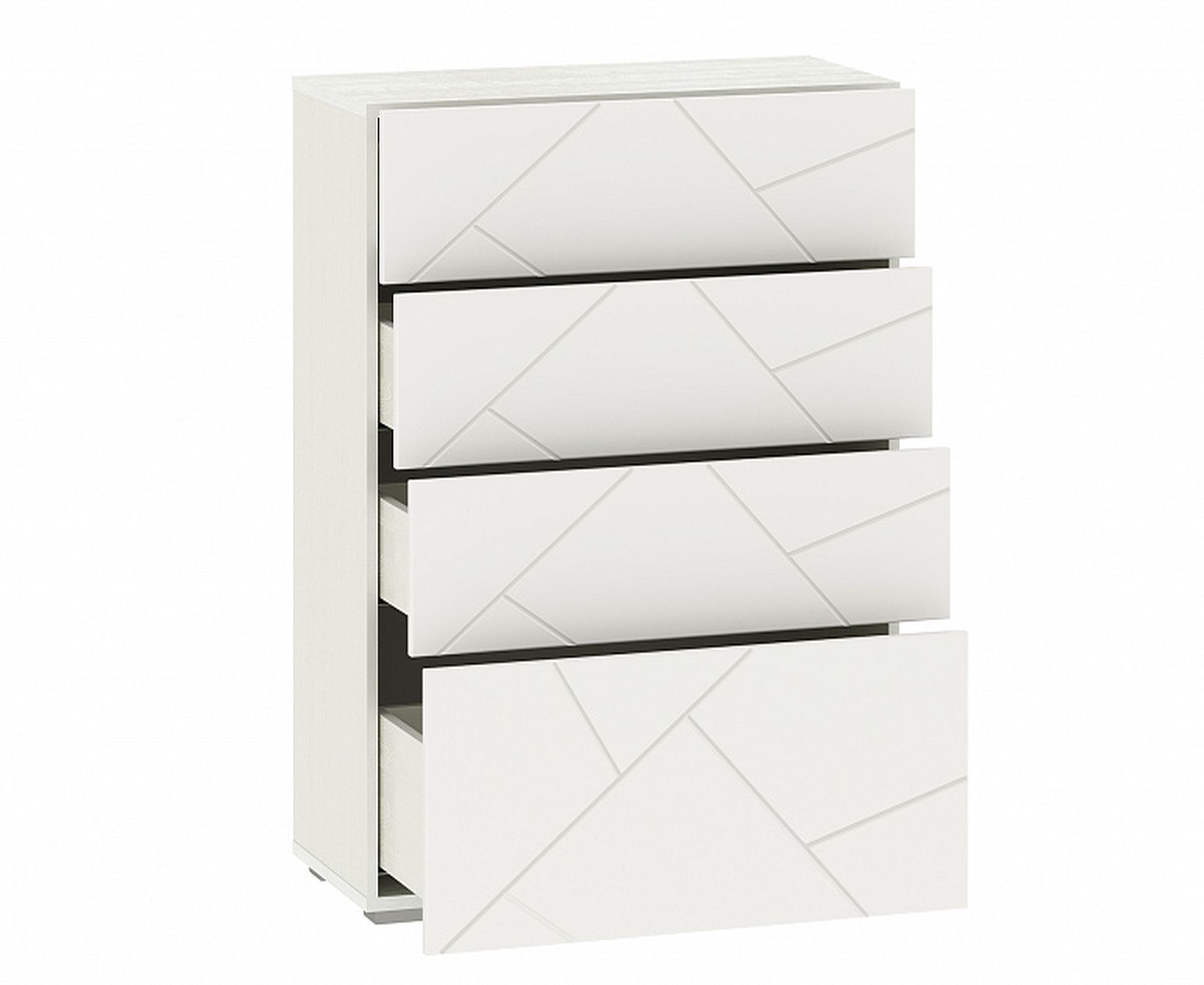 Конструкция с 4-я выдвижными ящиками для хранения одежды и белья. Фасады выполнены из МДФ и имеют оригинальную фактуру и цветовое исполнение.