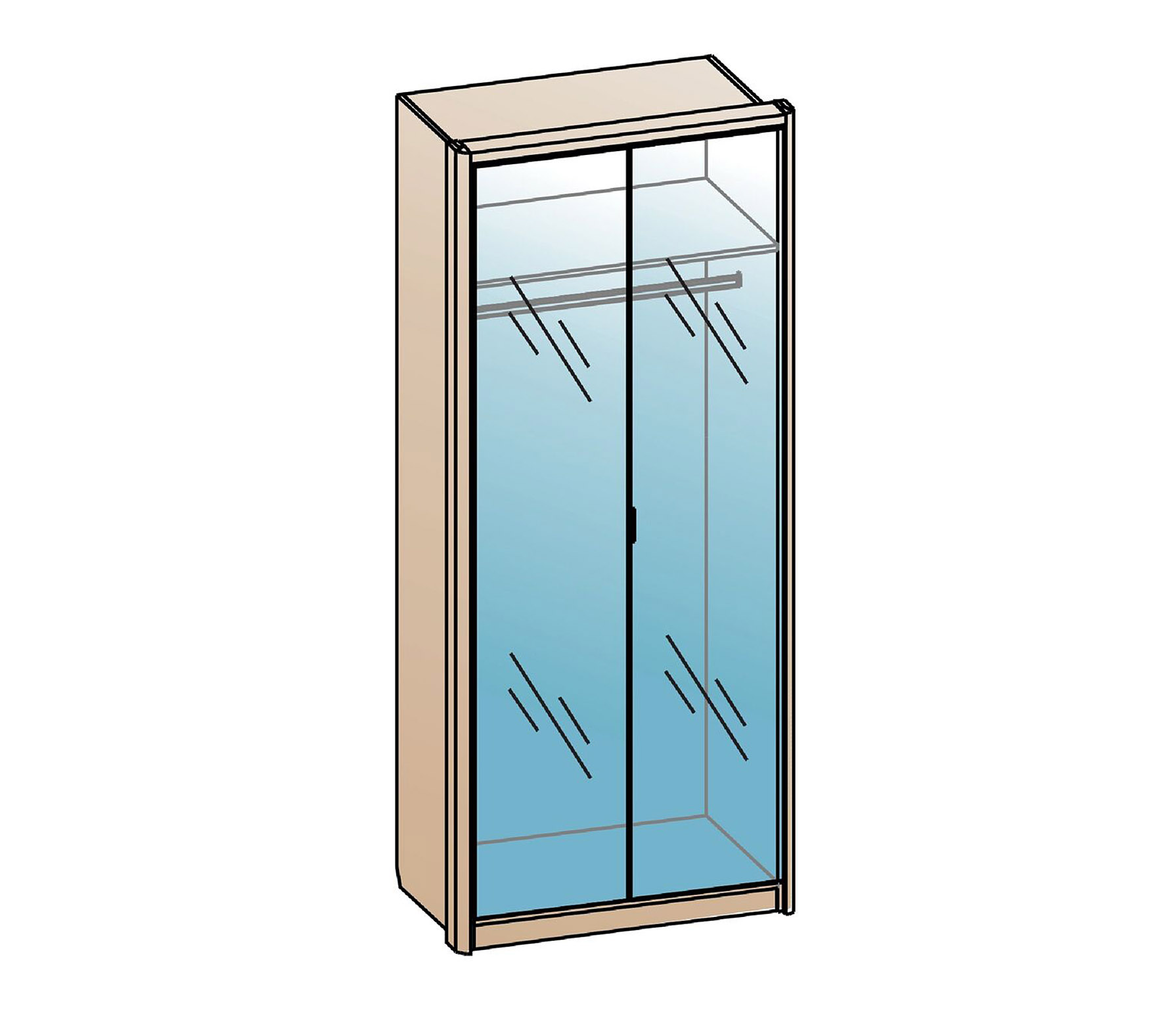 Шкаф Шер ШК-2318 2-х дверный, фасад шкафа декорирован зеркалами с обработкой фацет. Высота шкафов составляет 2330 мм, а полезная глубина 568 мм. Изготовлен из материала ЛДСП 16 мм, задняя стенка из ХДФ.
