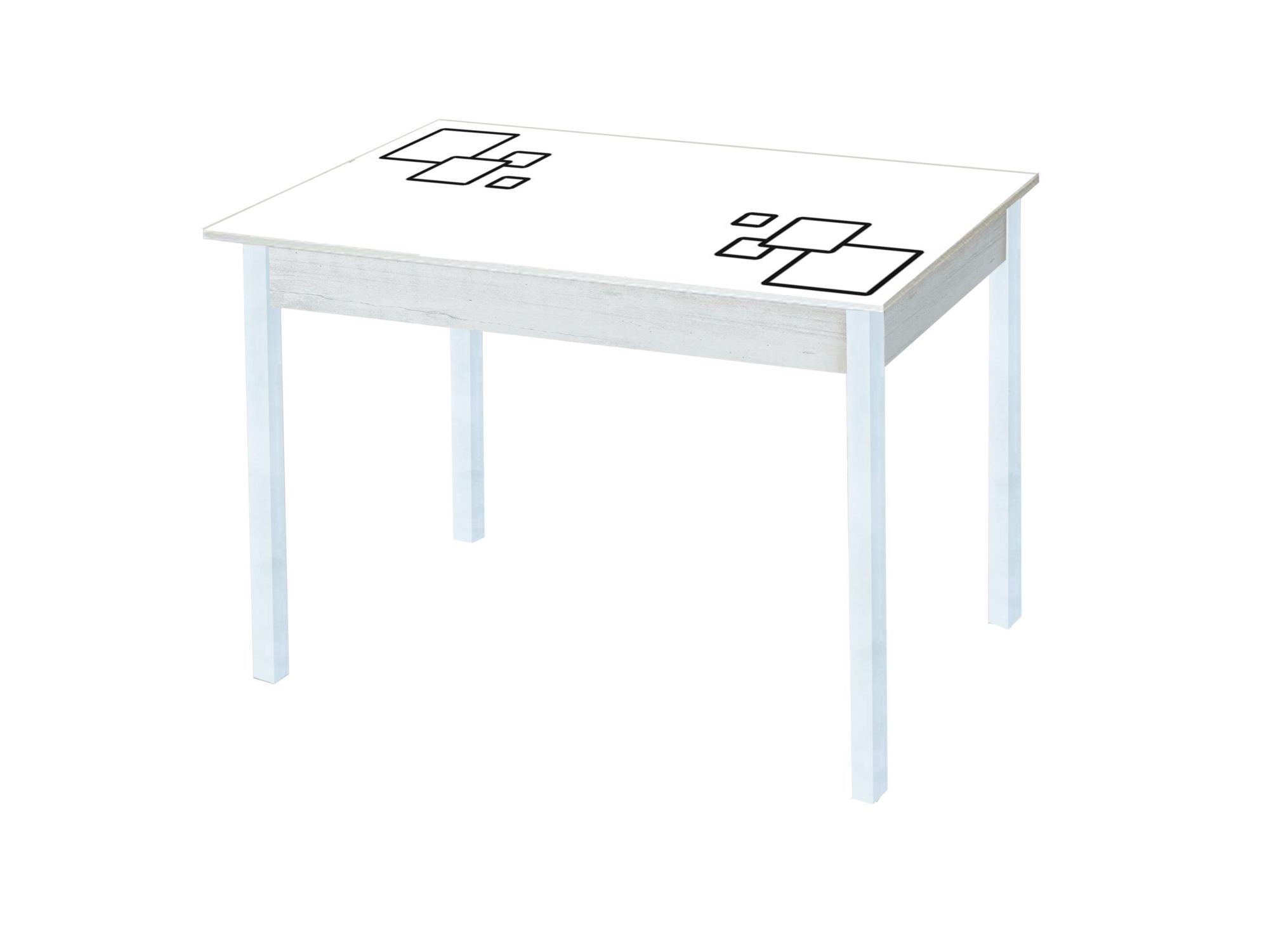 Столешница изготовлена из ЛДСП 16 мм и стекло с фотопечатью 4 мм. Ножки металлические квадратные окрашенные порошковой краской.