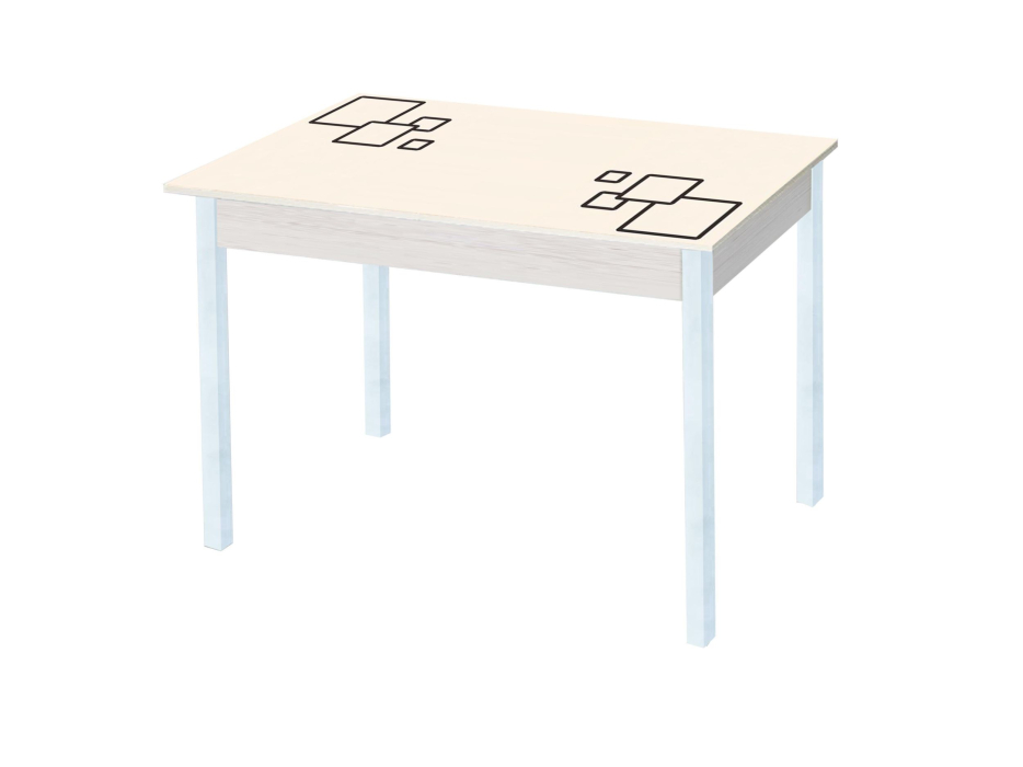 Столешница изготовлена из ЛДСП 16 мм и стекло с фотопечатью 4 мм. Ножки металлические квадратные окрашенные порошковой краской.