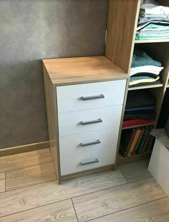 Высокий комод Мия отлично справится с вопросом хранения одежды в сложенном виде, вещей, постельного белья, игрушек, сезонных аксессуаров и всего того, что должно храниться в порядке. 4 выдвижных ящика оснащены роликовыми направляющими и удобными ручками. Регулируемые опоры позволяют установить комод даже на неровном полу.