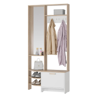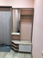 Большое зеркало, открытая верхняя полка для головных уборов и сезонных аксессуаров, крючки для верхней одежды, а также закрытая тумба-обувница и комплект полок для домашней обуви – все, что нужно для Вашего комфорта в прихожей.
