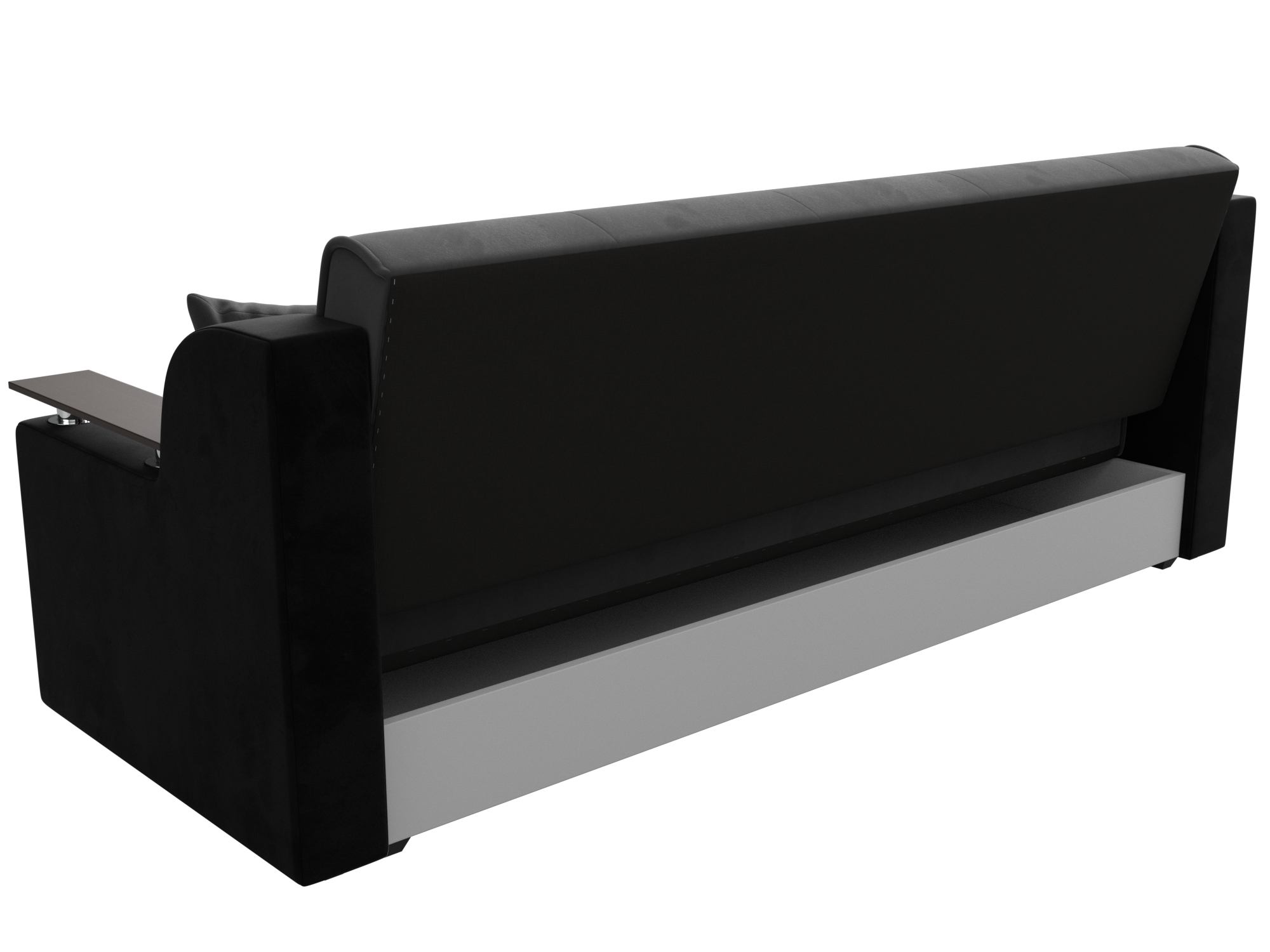 Сенатор – мягкий прямой диван с эргономичной спинкой и мини-столиками по бокам. Он устойчиво стоит на 4 пластиковых ножках, идеально гармонирующих с общим дизайном. Спинка прямая, без съемных подушек, подлокотники деревянные, выполняют роль столиков. Классический механизм «книжка» позволяет быстро трансформировать его в удобную двуспальную кровать.