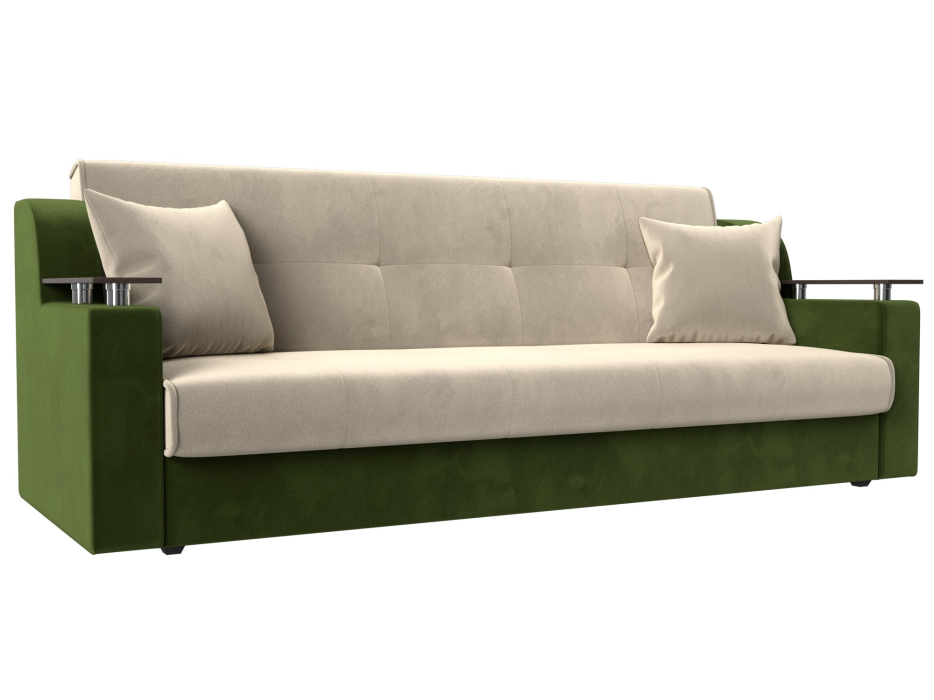Отзывы о Столплит Прямой диван книжка Сенатор, микровельвет бежевый/зеленый