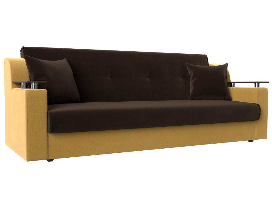 Отзывы о Столплит Прямой диван книжка Сенатор, микровельвет Коричневый/Желтый