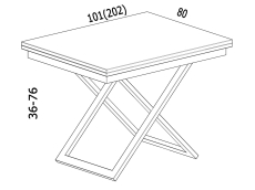 Размеры в верхнем положении: Д: 80 см x Ш: 202 см x В: 36-76 см