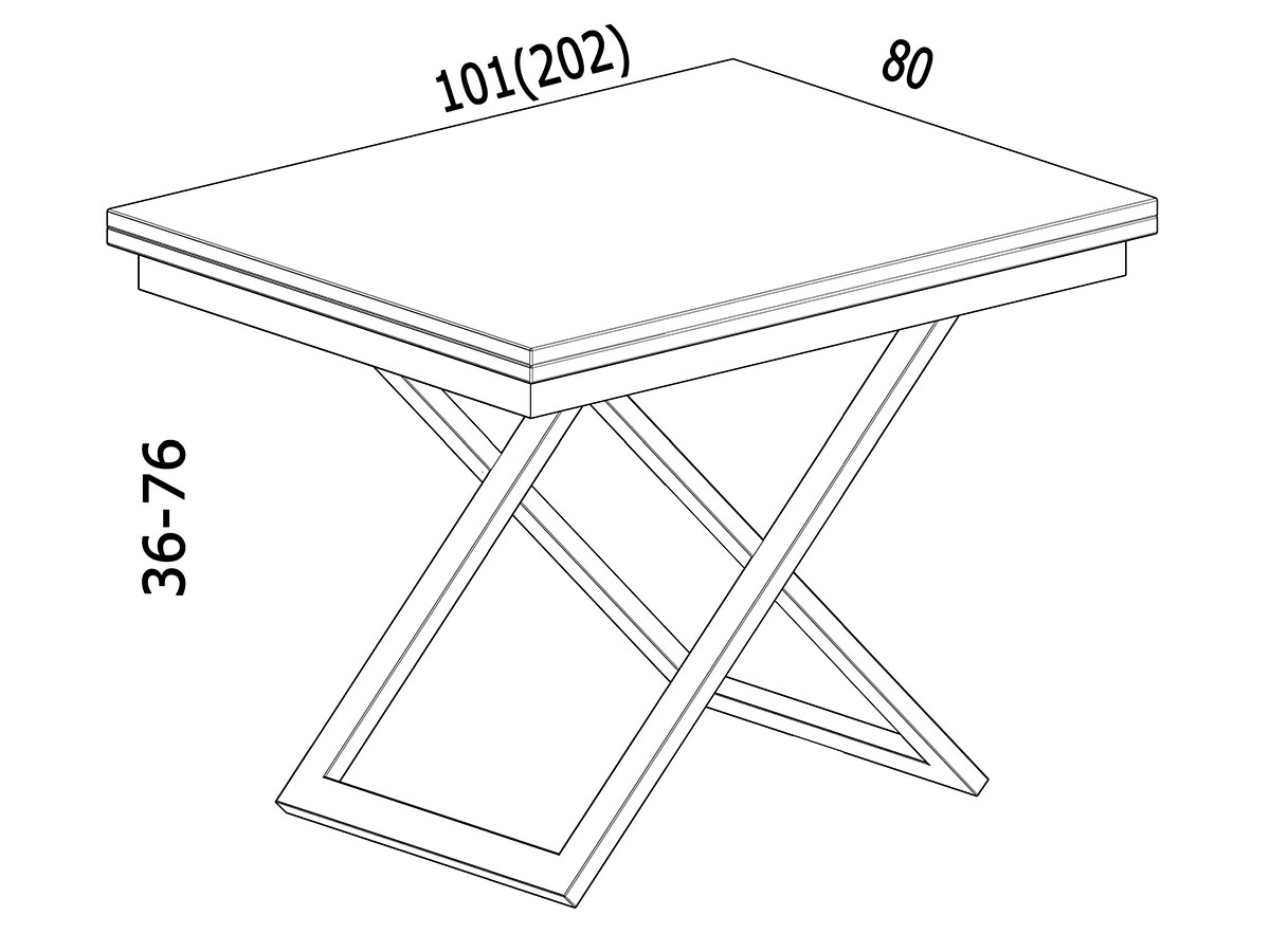 Размеры в верхнем положении: Д: 80 см x Ш: 202 см x В: 36-76 см
