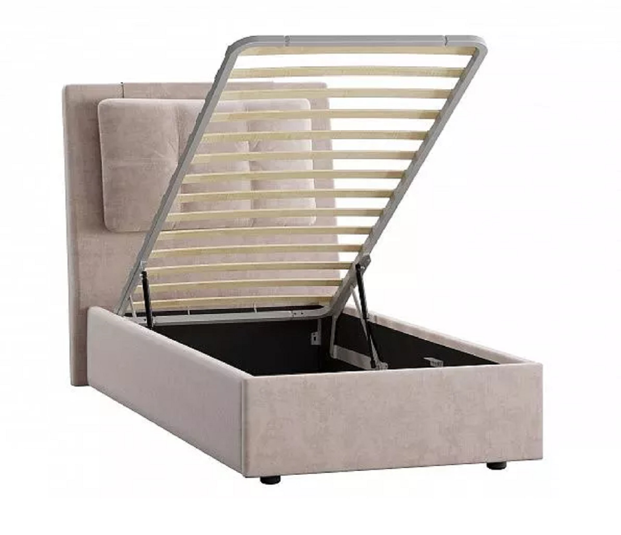 Кровать Ester 900 прекрасно дополнит интерьер спальни, молодёжной или детской комнаты. Конструкция с одной головной спинкой. Модель оснащена подъемным механизмом и ящиком для белья.