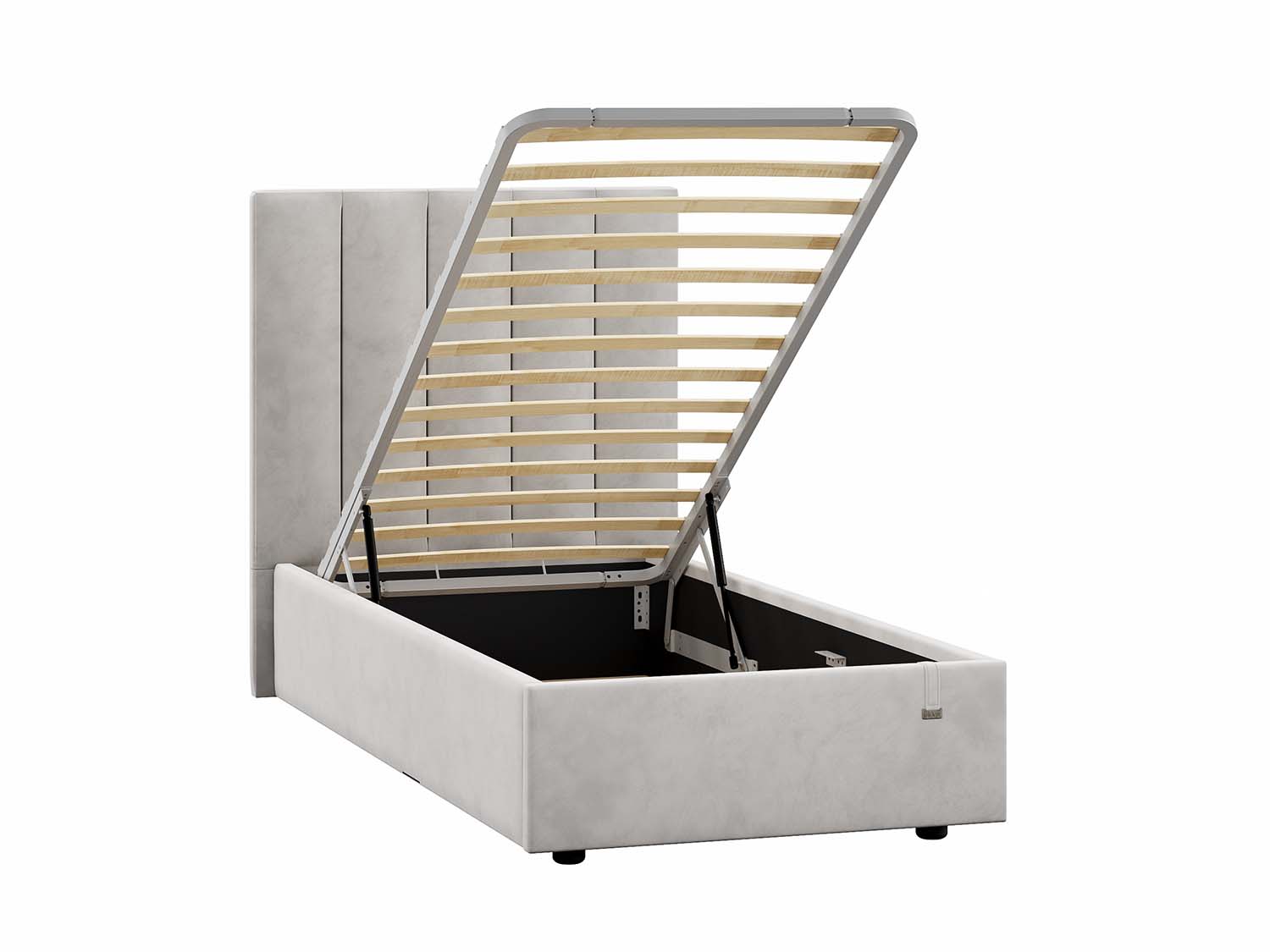 Модель оснащена подъемным механизмом и ящиком для белья.
