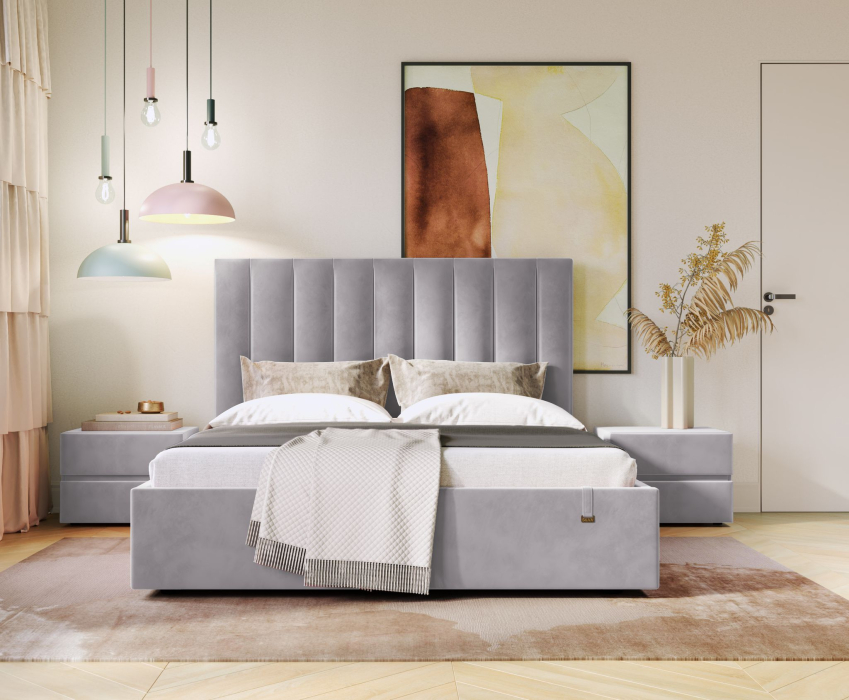 Кровать Ingrid 1600 отлично подходит для комплектации интерьера спальни, молодёжной или детской комнаты. Конструкция с большой головной спинкой. Модель оснащена подъемным механизмом и ящиком для белья.