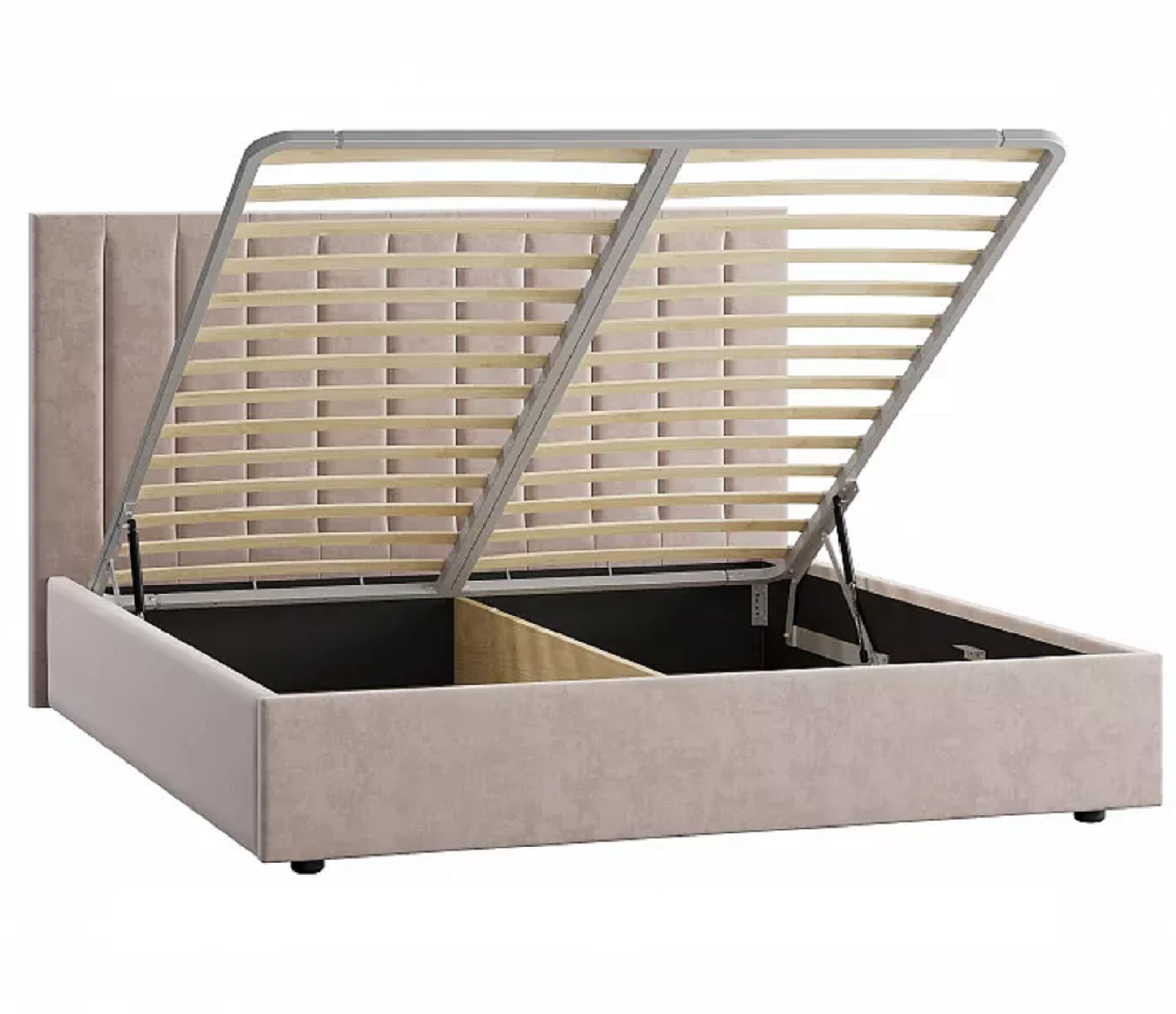 Модель оснащена подъемным механизмом и ящиком для белья.