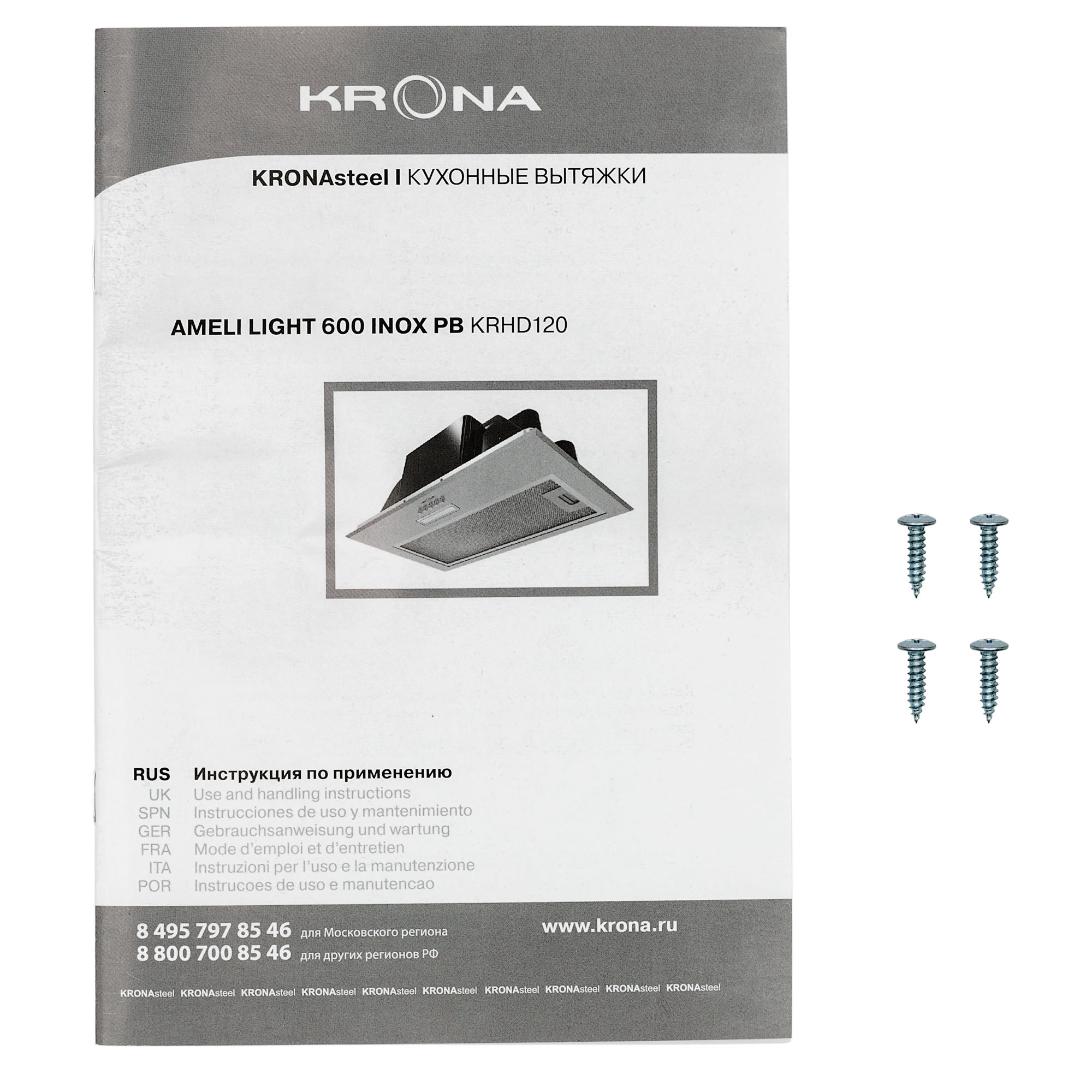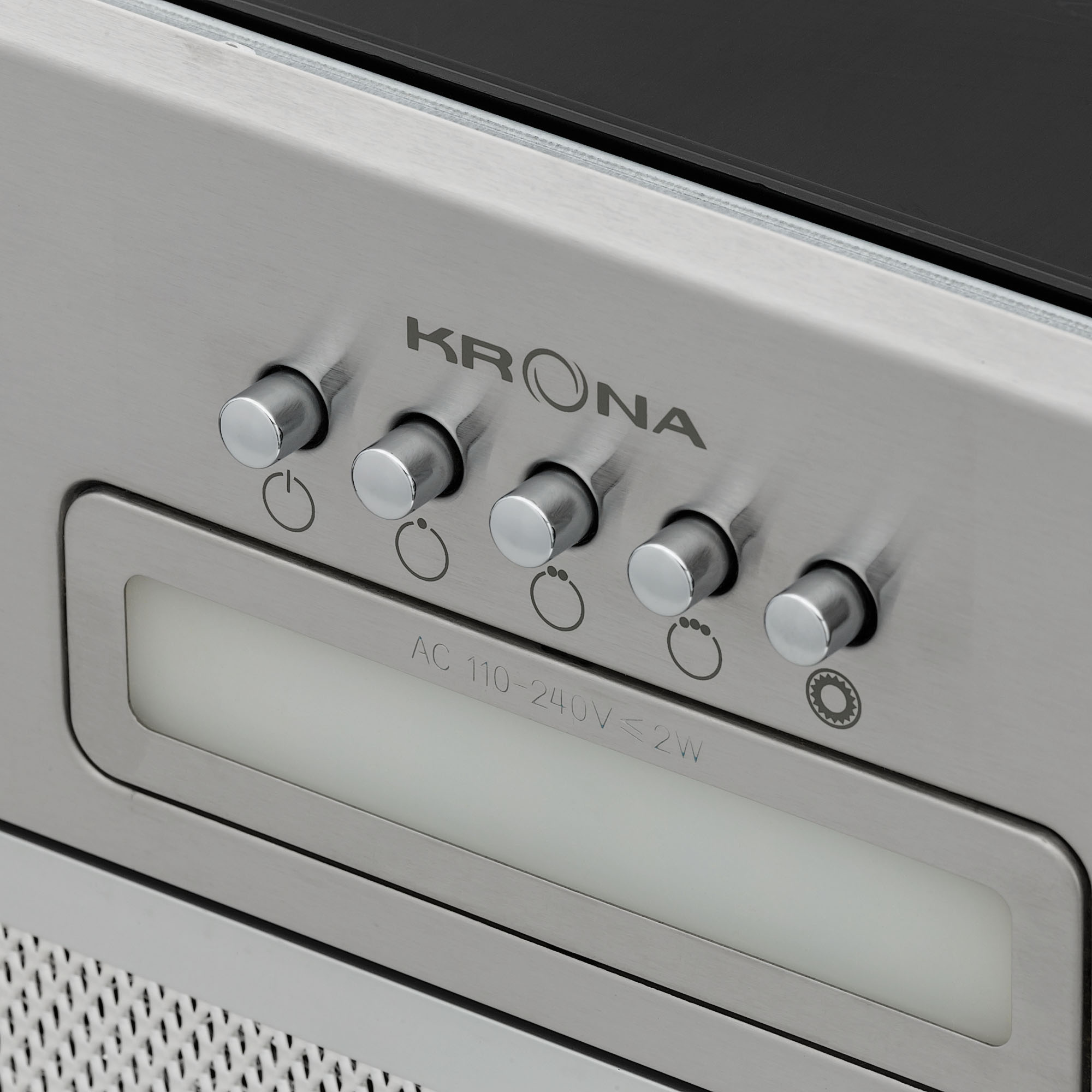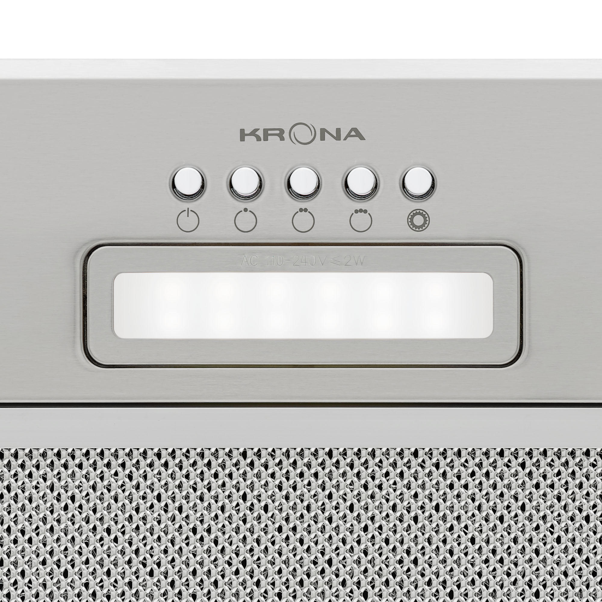 Полновстраиваемая вытяжка AMELI LIGHT объединяет в себе три самые важные качественные характеристики кухонной вытяжки: тихая, производительная и компактная. Корпус вытяжки выполнен из прочного пластика и имеет множество ребер жесткости, что позволяет максимально эффективно "сглаживать" вибрации и шум от работы двигателя. Уровень шума при такой конструкции вытяжки становится максимально низким и попадает в диапозон от 32 до 44 Дб. Данная модель является одной из самых "тихих" вытяжек в бренде KRONA. При тихой работе двигателя вытяжка обладает оптимальной производительностью - 550 метра куб/ч, которая с легкостью очистит воздух на кухне площадью до 11 кв.м. Энергосберегающая LED подсветка станет дополнительным источником света на кухне, а надежные кнопочные переключатели позволят быстро и легко управлять вытяжкой. Высокое качество модели подтверждено гарантией на мотор 7 лет.