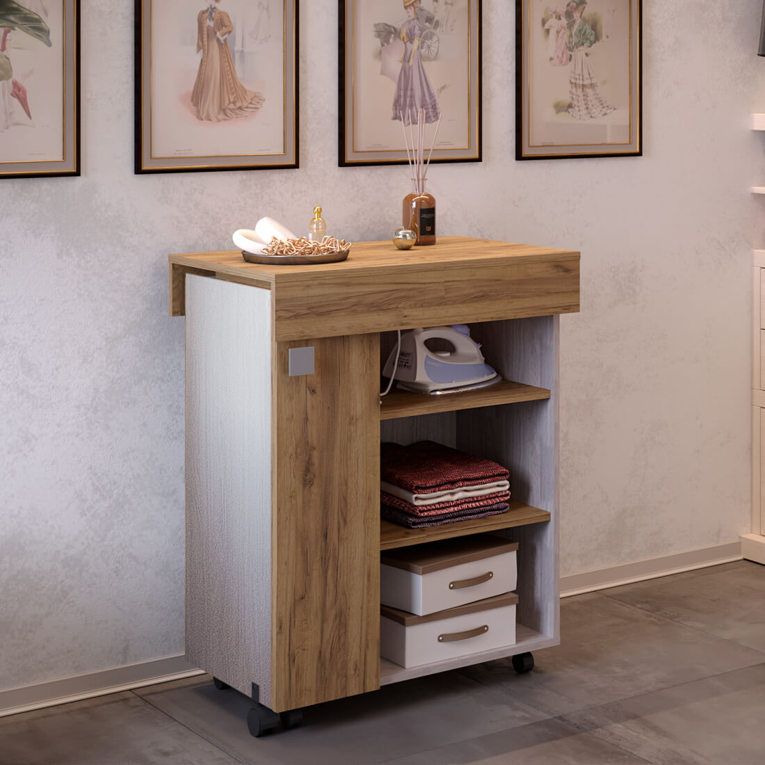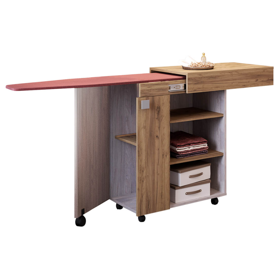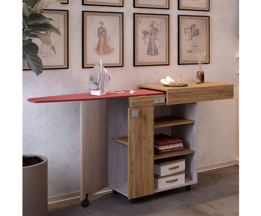 Механизм изделия позволит Вам легко трансформировать тумбу в гладильную доску и сэкономить при этом пространство комнаты.