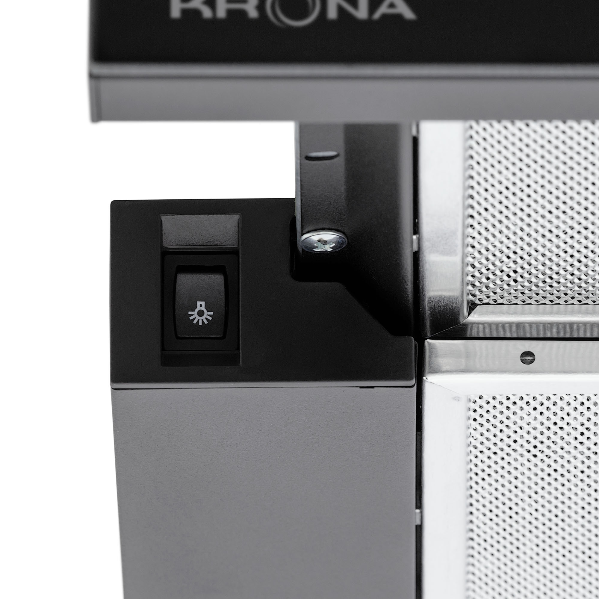 Вытяжка легенда KRONA KAMILLA теперь в новом исполнении. KAMILLA AIR-это стильная и функциональная модель с панелью из закаленного стекла. Это стильное решение идеально подойдет для современных кухонь с глянцевыми фасадами. У вытяжки есть удобная функция "slide-stop",благодаря которой модель запоминает последнюю выбранную скорость включения.