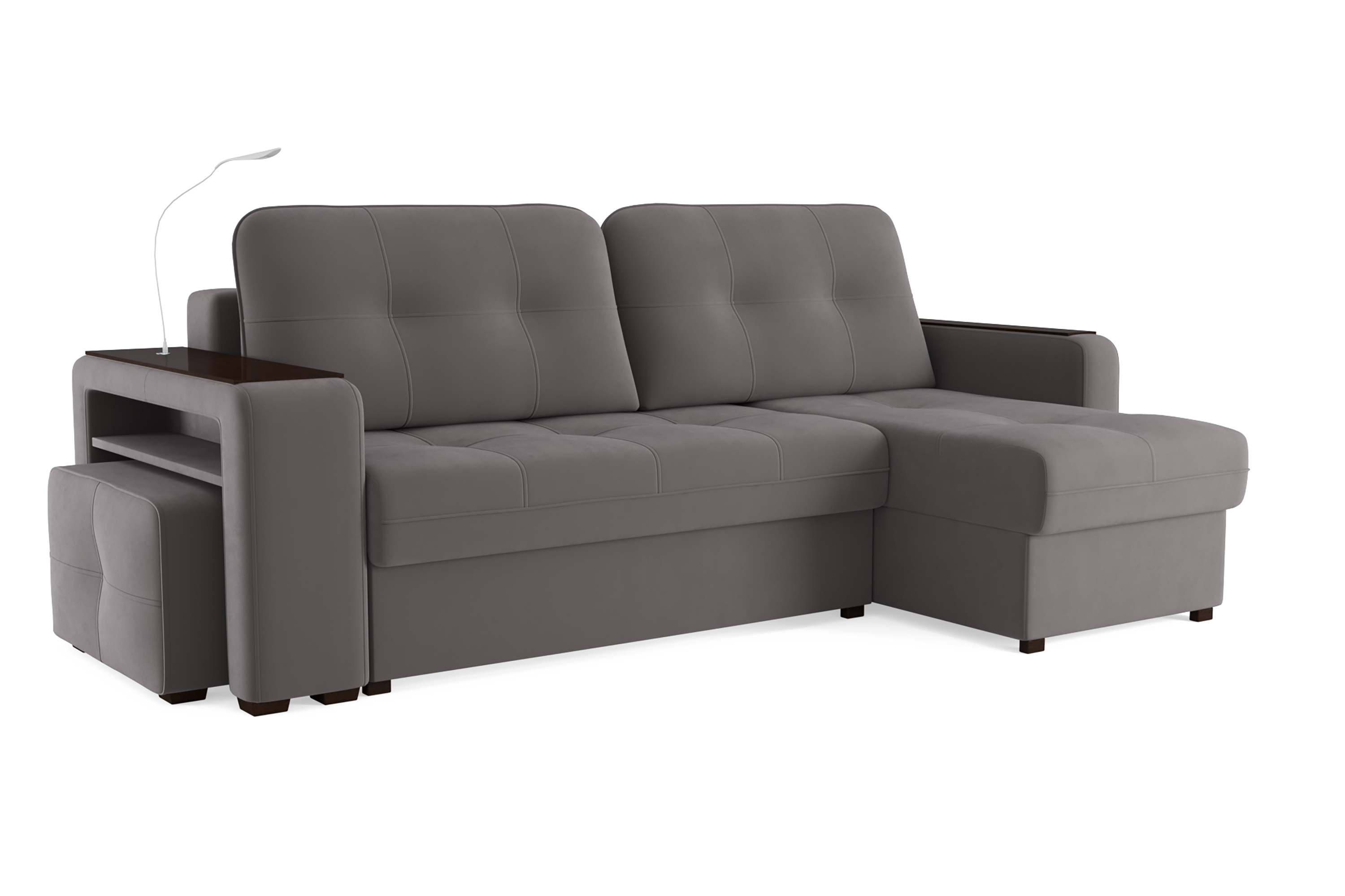 Отзывы о Столплит Диван-кровать угловой Smart 4 пуф слева Велюр Темно-серый
