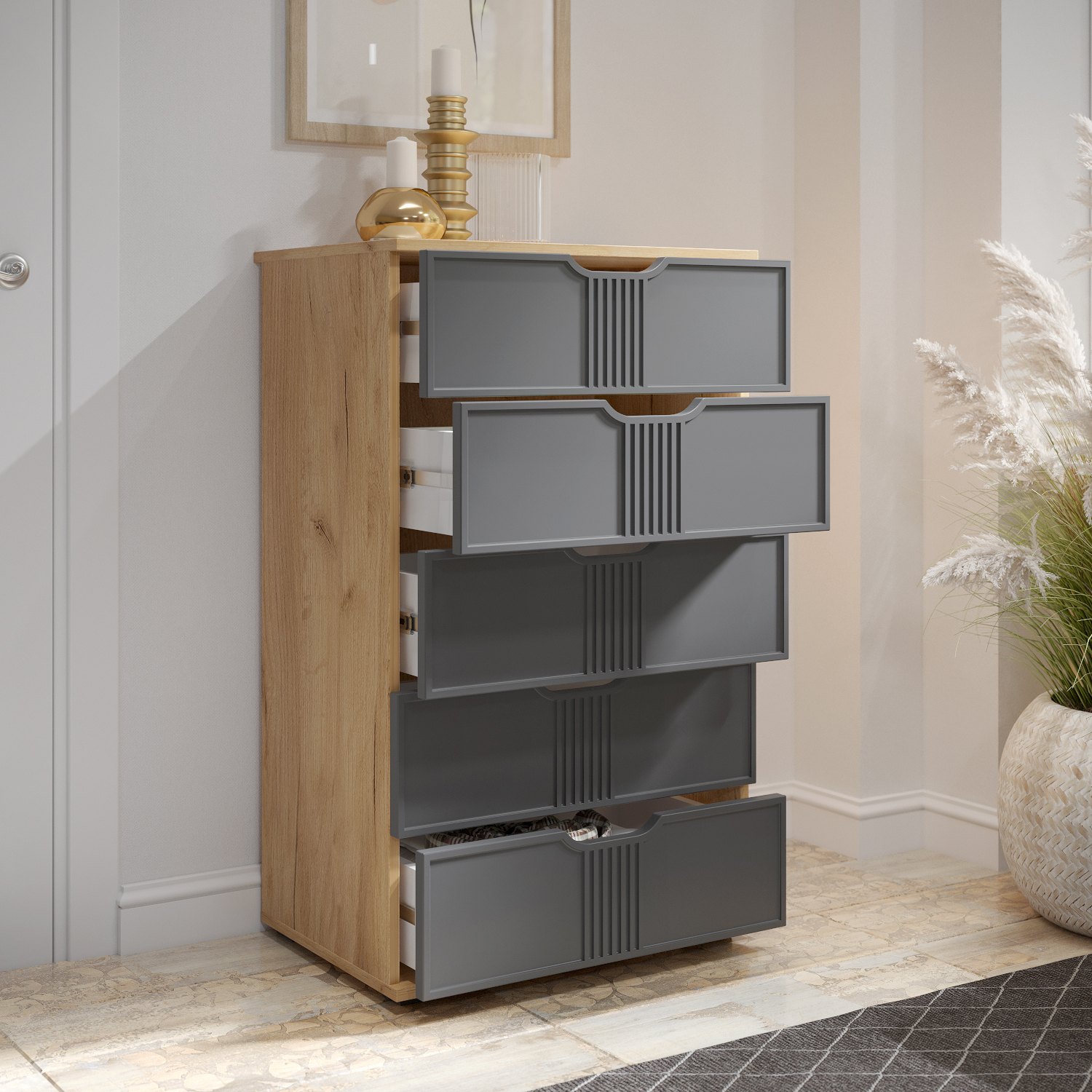 Комод Эмилия ЭЛ-18 изготовлен из ЛДСП 16 мм, фасады МДФ. Свес крышки в 30 мм обеспечит прилегание к стене с любым плинтусом. Фурнитура: телескопические направляющие полного выдвижения без доводчиков. Важная информация. Мебель доставляется в разобранном виде, в упаковках.