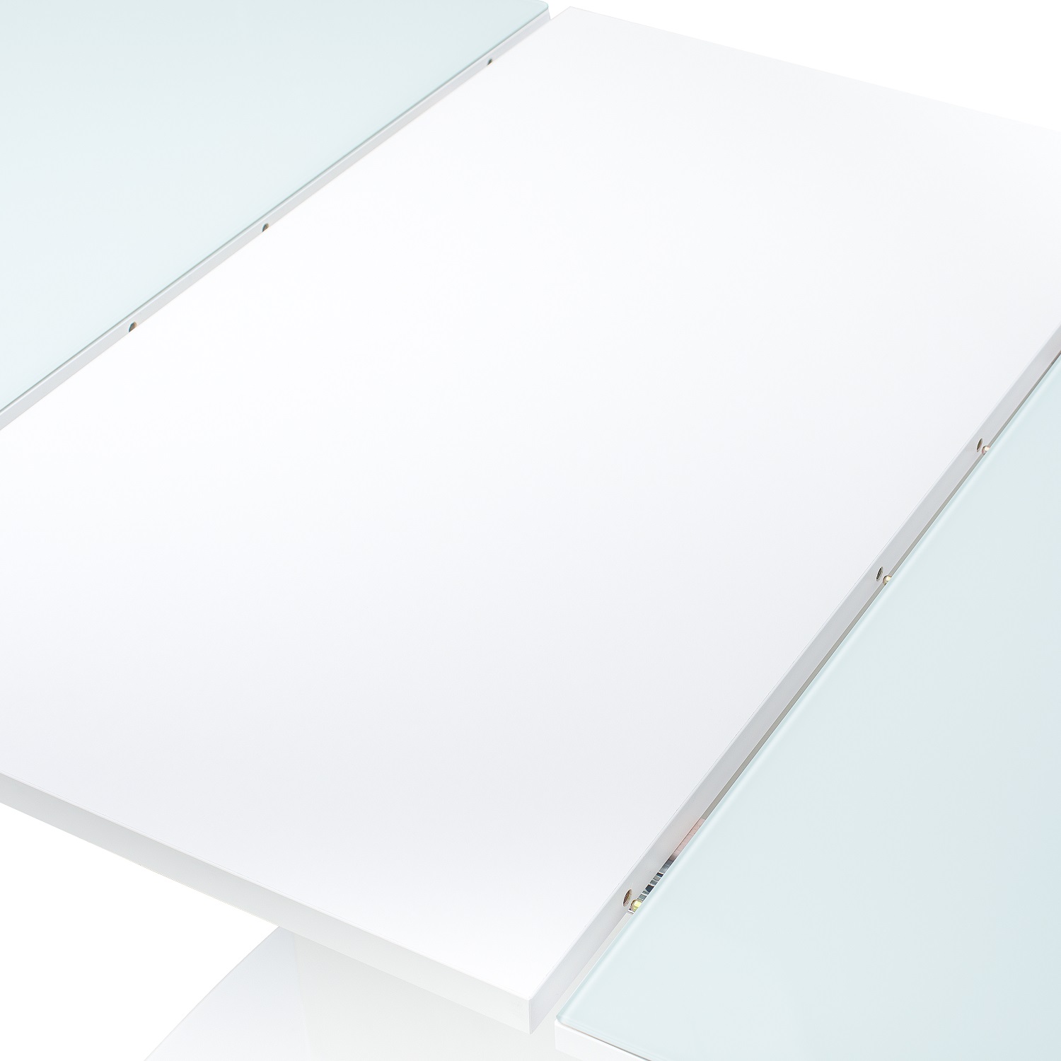 Стол Денвер выполнен в современном стиле и оснащен синхронным механизм раздвижения. Центральная вставка хранится внутри стола. Материал столешницы — закаленное стекло. Подстолье — МДФ в покраске лак. В белом цвете вставка – ЛДСП. В цвете капучино вставка — стекло.