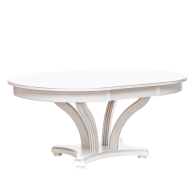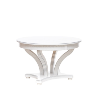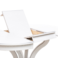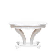 Красивый, компактный и вместительный обеденный стол Ромео – элегантная новинка коллекции обеденных групп Leset. Фигурное основание стола для кухни и опоры из массива бука украшены античной резьбой, круглая столешница столика из шпонированного ЛДСП подчеркивает стильное решение. Стол раздвижной оборудован синхронным механизмом "бабочка", что позволяет разместить 6-8 персон, а в собранном виде экономить пространство. Стол кухонный раздвижной не только станет центральным акцентом кухни или столовой. Изящный и эргономичный стол обеденный круглый идеально впишется в интерьер кафе, ресторана. Габариты стола раскладного 120x120x76 см, в разложенном виде ширина стола 170см. Стол кухонный круглый выдержит 50 кг распределенной нагрузки. Столы обеденные Ромео представлены в 3-х решениях. Найдется подходящий к вашему дизайну стол: круглый белый, слоновая кость или темный орех. Выбирайте столы и стулья для кухни российского производителя! Безупречное сочетание – круглый стол со стульями Юта Leset.