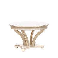 Красивый, компактный и вместительный обеденный стол Ромео – элегантная новинка коллекции обеденных групп Leset. Фигурное основание стола для кухни и опоры из массива бука украшены античной резьбой, круглая столешница столика из шпонированного ЛДСП подчеркивает стильное решение. Стол раздвижной оборудован синхронным механизмом "бабочка", что позволяет разместить 6-8 персон, а в собранном виде экономить пространство. Стол кухонный раздвижной не только станет центральным акцентом кухни или столовой. Изящный и эргономичный стол обеденный круглый идеально впишется в интерьер кафе, ресторана. Габариты стола раскладного 120x120x76 см, в разложенном виде ширина стола 170см. Стол кухонный круглый выдержит 50 кг распределенной нагрузки. Столы обеденные Ромео представлены в 3-х решениях. Найдется подходящий к вашему дизайну стол: круглый белый, слоновая кость или темный орех. Выбирайте столы и стулья для кухни российского производителя! Безупречное сочетание – круглый стол со стульями Юта Leset.