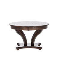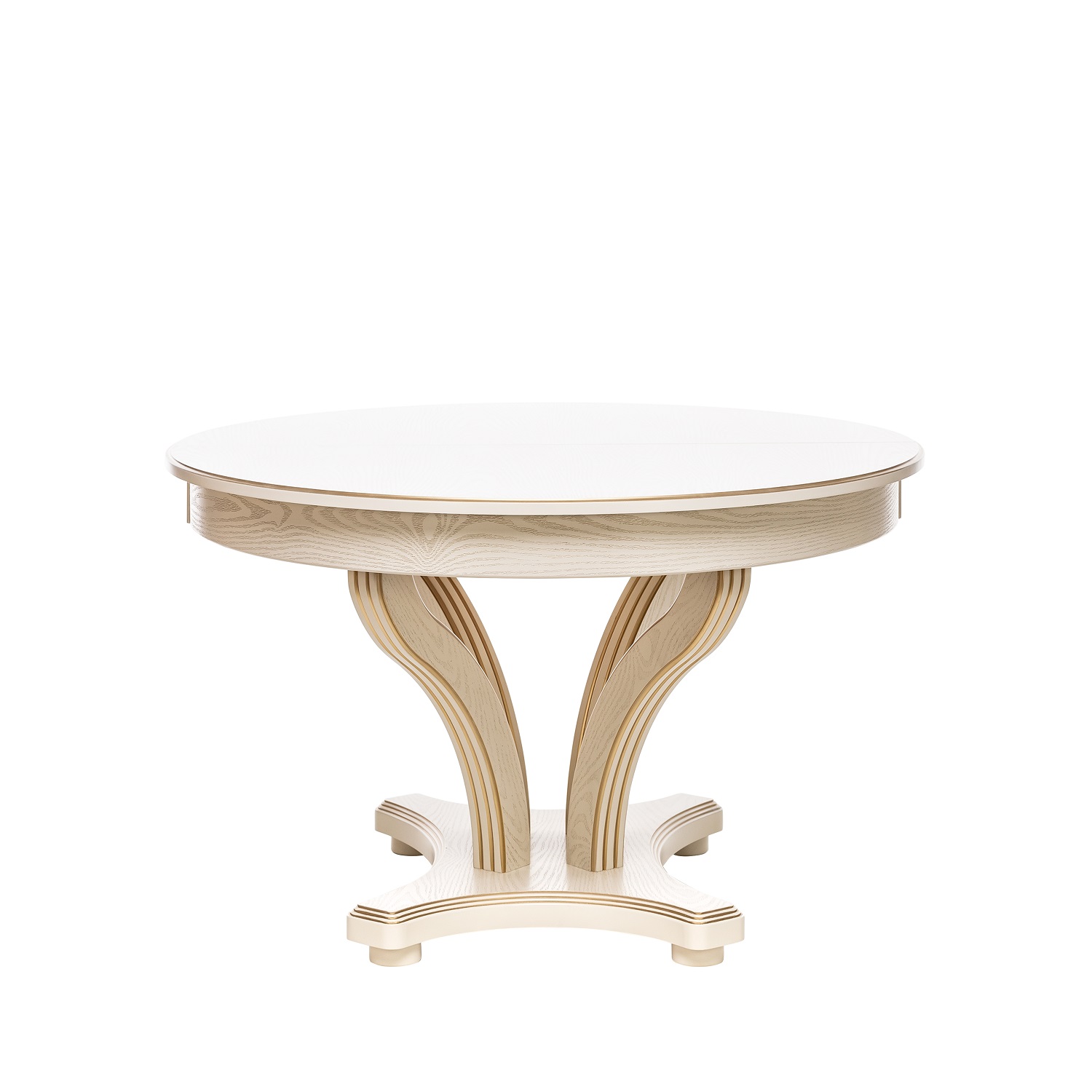 Красивый, компактный и вместительный обеденный стол Ромео – элегантная новинка коллекции обеденных групп Leset. Фигурное основание стола для кухни и опоры из массива бука украшены античной резьбой, круглая столешница столика из шпонированного ЛДСП подчеркивает стильное решение. Стол раздвижной оборудован синхронным механизмом "бабочка", что позволяет разместить 6-8 персон, а в собранном виде экономить пространство. Стол кухонный раздвижной не только станет центральным акцентом кухни или столовой. Изящный и эргономичный стол обеденный круглый идеально впишется в интерьер кафе, ресторана. Габариты стола раскладного 120x120x76 см, в разложенном виде ширина стола 170см. Стол кухонный круглый выдержит 50 кг распределенной нагрузки. Столы обеденные Ромео представлены в 3-х решениях. Найдется подходящий к вашему дизайну стол: круглый белый, слоновая кость или темный орех. Выбирайте столы и стулья для кухни российского производителя! Безупречное сочетание – круглый стол со стульями Юта Leset.