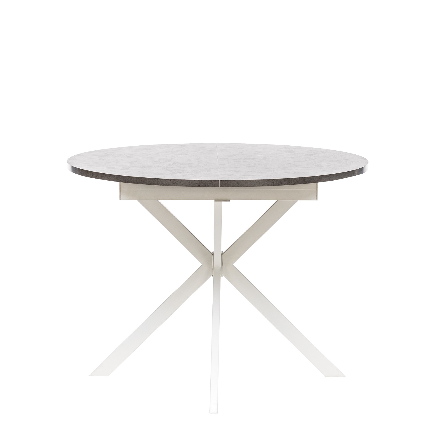 Круглый обеденный стол на перекрещенных ножках смотрится изящно, лаконично и ненавязчиво в любом интерьере. Он словно застыл в энергичном танце! Дополнительная вставка в цвет столешницы продолжает элегантный образ изделия, делая его целостным и завершенным.