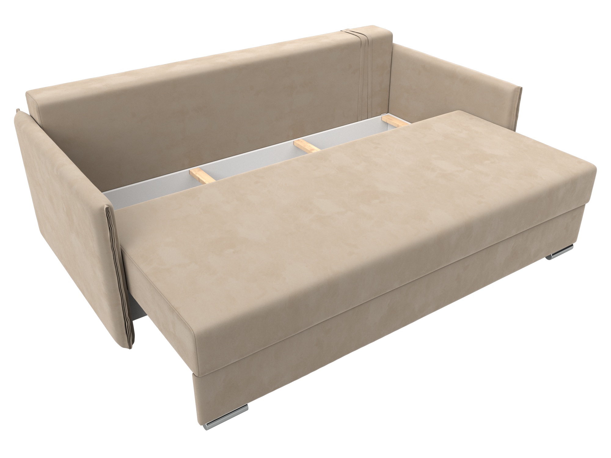 При компактных габаритах: 203x105x90 см подойдет для комнат любых размеров, легко раскладывается, обеспечивая спальное место 142x190 см.