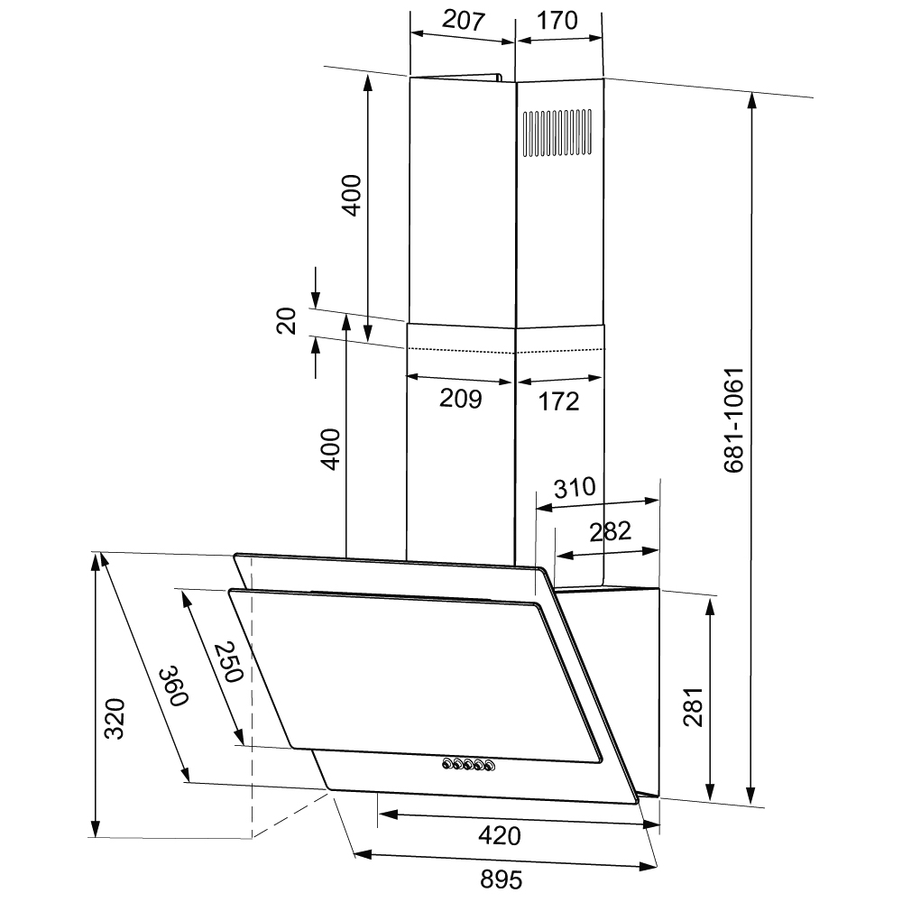 Вытяжка кухонная VENERA 900 BLACK PB Код I0000333408