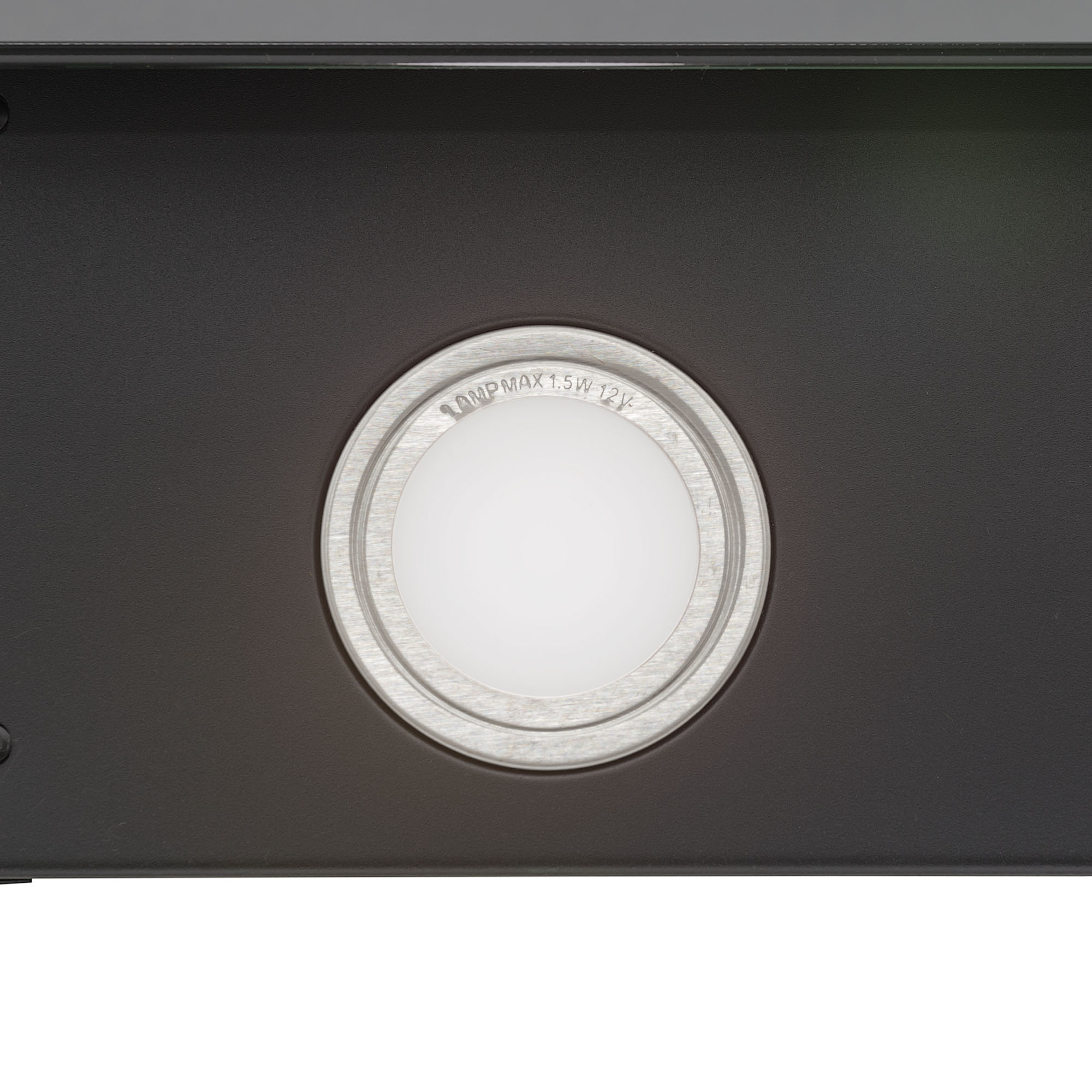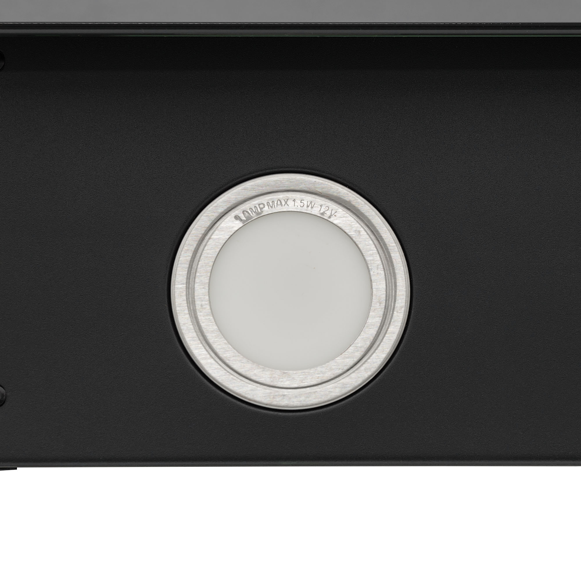 Наклонная вытяжка VENERA выполнена из черного закаленного стекла.