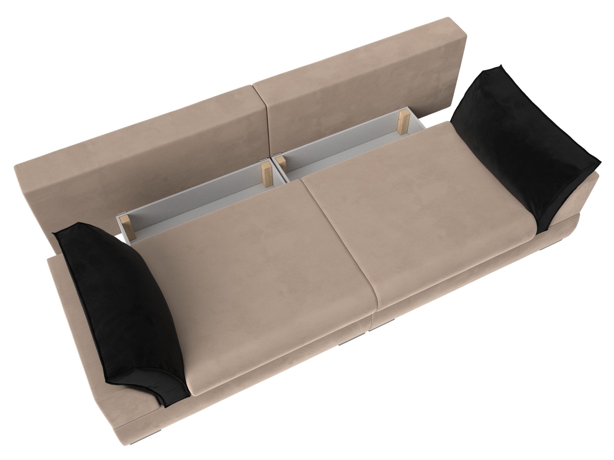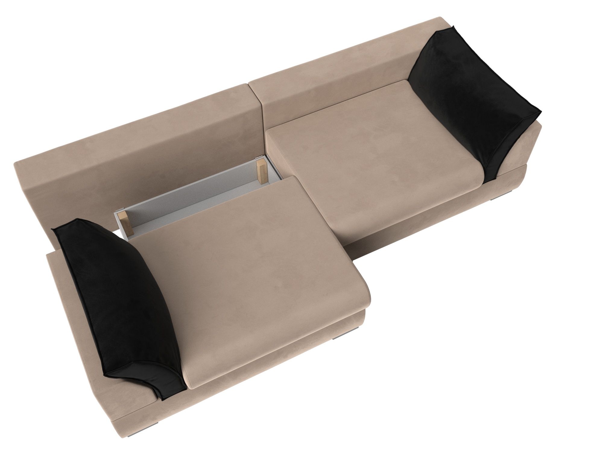 Система надежна в использовании. Для раскладывания дивана сиденье прямого дивана потребуется слегка приподнять и потянуть переднюю часть на себя, спинка складывается вручную в открывшуюся нишу.