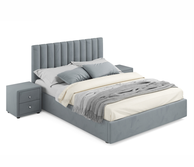 Мягкая 2-спальная интерьерная кровать Olivia 1600 с подъемным механизмом и прикроватными тумбами – стильный и современный предмет мебели, который сделает вашу спальню поистине королевской.