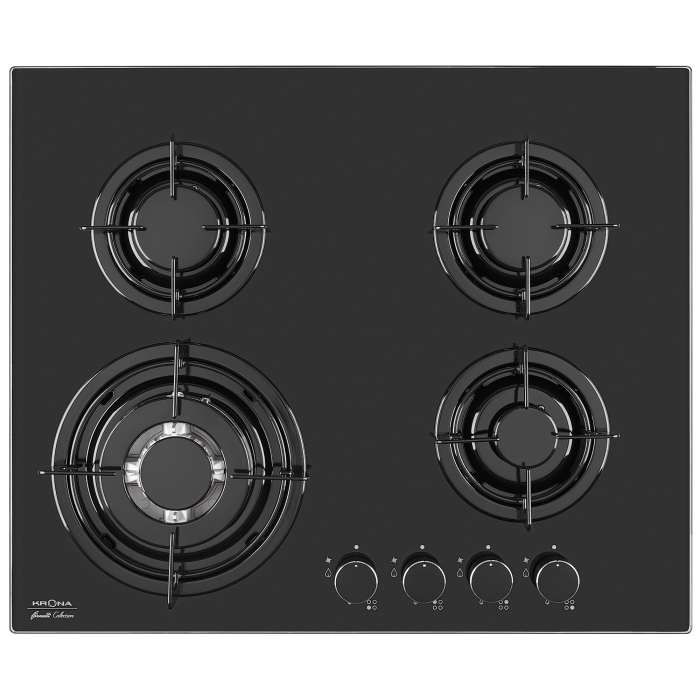 Газовая варочная поверхность CORTESIA 60 выполнена из черного закаленного стекла толщиной 8 мм. Модель оснащена экспресс-конфоркой с ""Тройным пламенем"", которая отлично подойдет для приготовления в посуде большого объема, а также приготовления стир-фрай или обжаривания мяса. Для вашего удобства и безопасности в модели предусмотрены автоматический электроподжиг и функция ""Газ-контроль"".