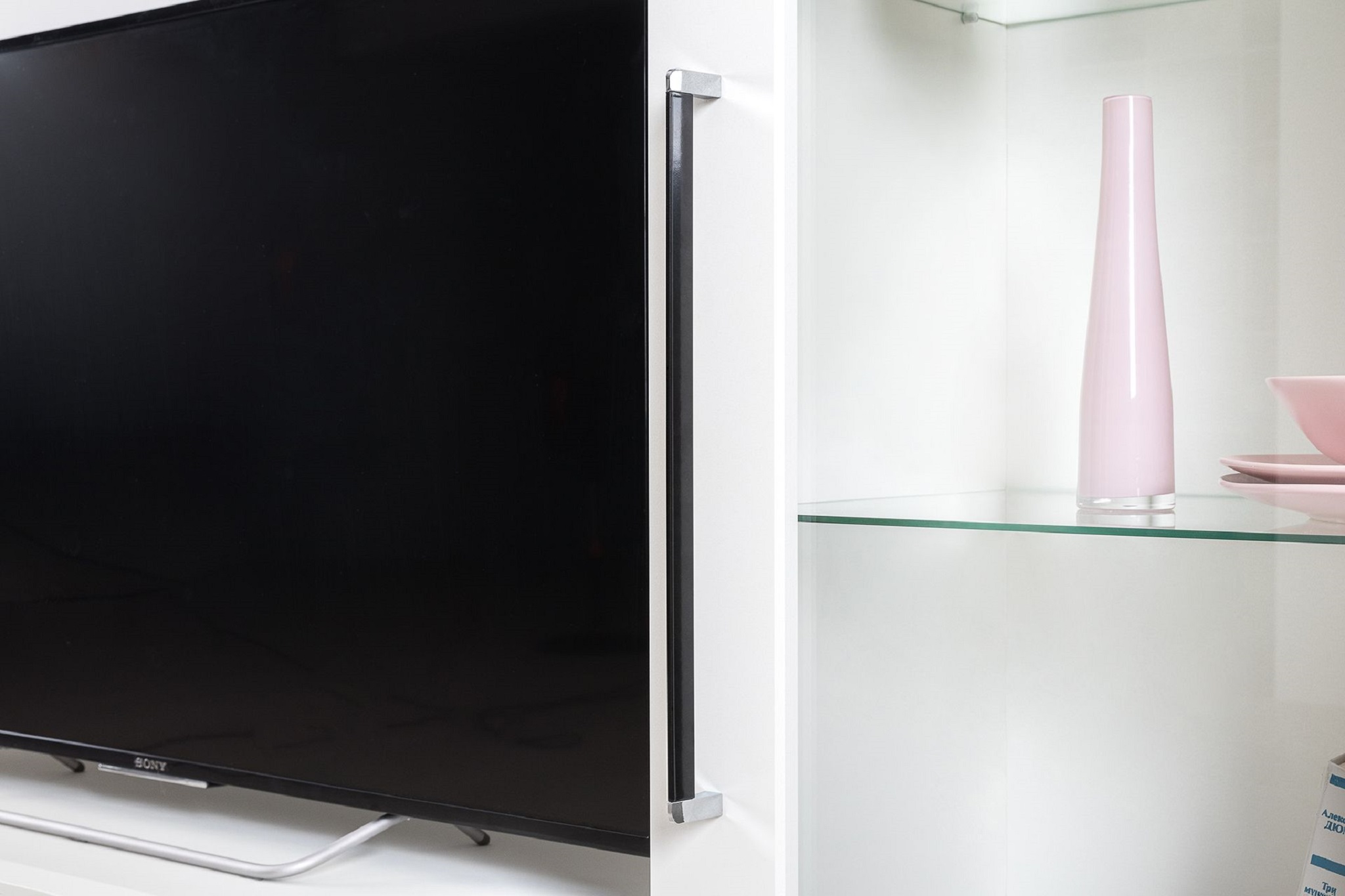 Шкаф-пенал Валенсия 13.218 яркое изделие для современного интерьера гостиной комнаты.