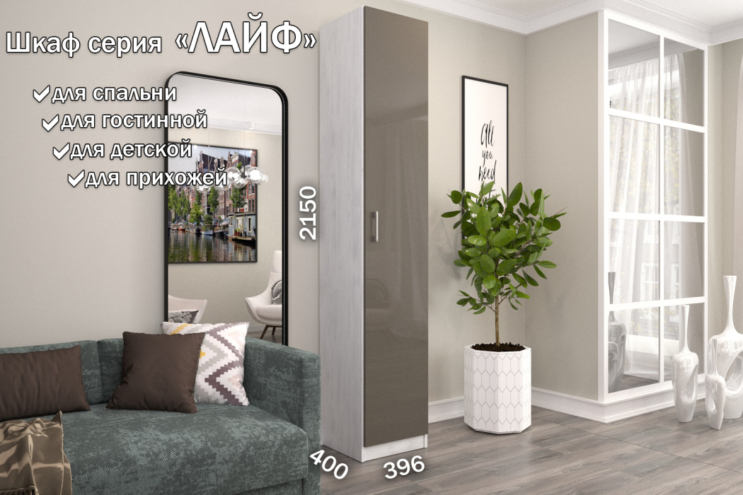 Стильные и удобные корпусные шкафы и наборные корпусные элементы «Лайф» – одно из самых выгодных предложений серийной мебели. Уникальностью данных шкафов, является возможность вносить изменения при сборке. Внутренние детали крепятся на эксцентриках, что позволяет в момент сборки изделия менять секций местами, это дает возможность выбрать максимально удобное расположение. Отличительные особенности шкафов «Лайф» – качественные материалы, удобная комплектация внутреннего наполнения и отличная фурнитура, которая обеспечивает долговечность использования и дает простоту и надежность сборки. Данная серия может комбинироваться в любых четырех цветах на корпус изделия и в любых четырех цветах на фасады изделия на усмотрение и вкус покупателя. Используемые цвета корпуса: Венге, Дуб Сонома, Дуб Экспрессив бронзовый, Северное дерево. Используемые цвета на фасады изделия из материала МДФ Высокий глянец: Белый Бриллиант, Латте, Макиато, Антрацит