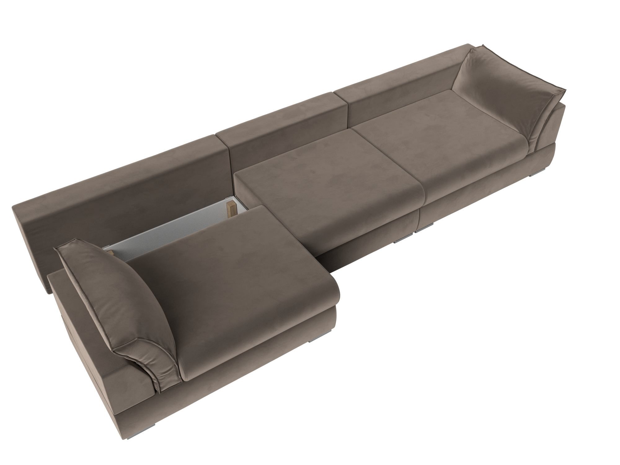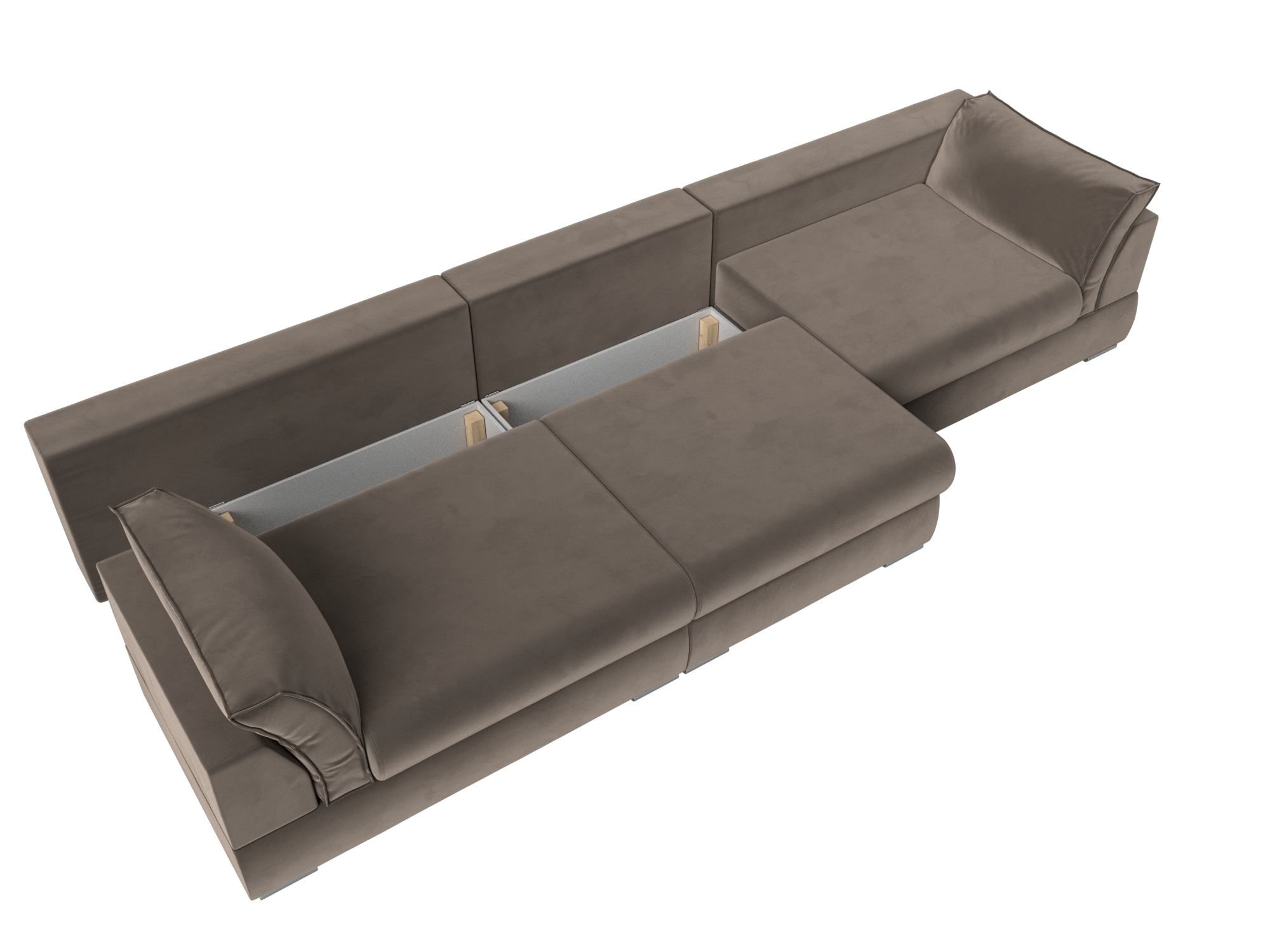 Система надежна в использовании. Для раскладывания дивана сиденье прямого дивана потребуется слегка приподнять и потянуть переднюю часть на себя, спинка складывается вручную в открывшуюся нишу.