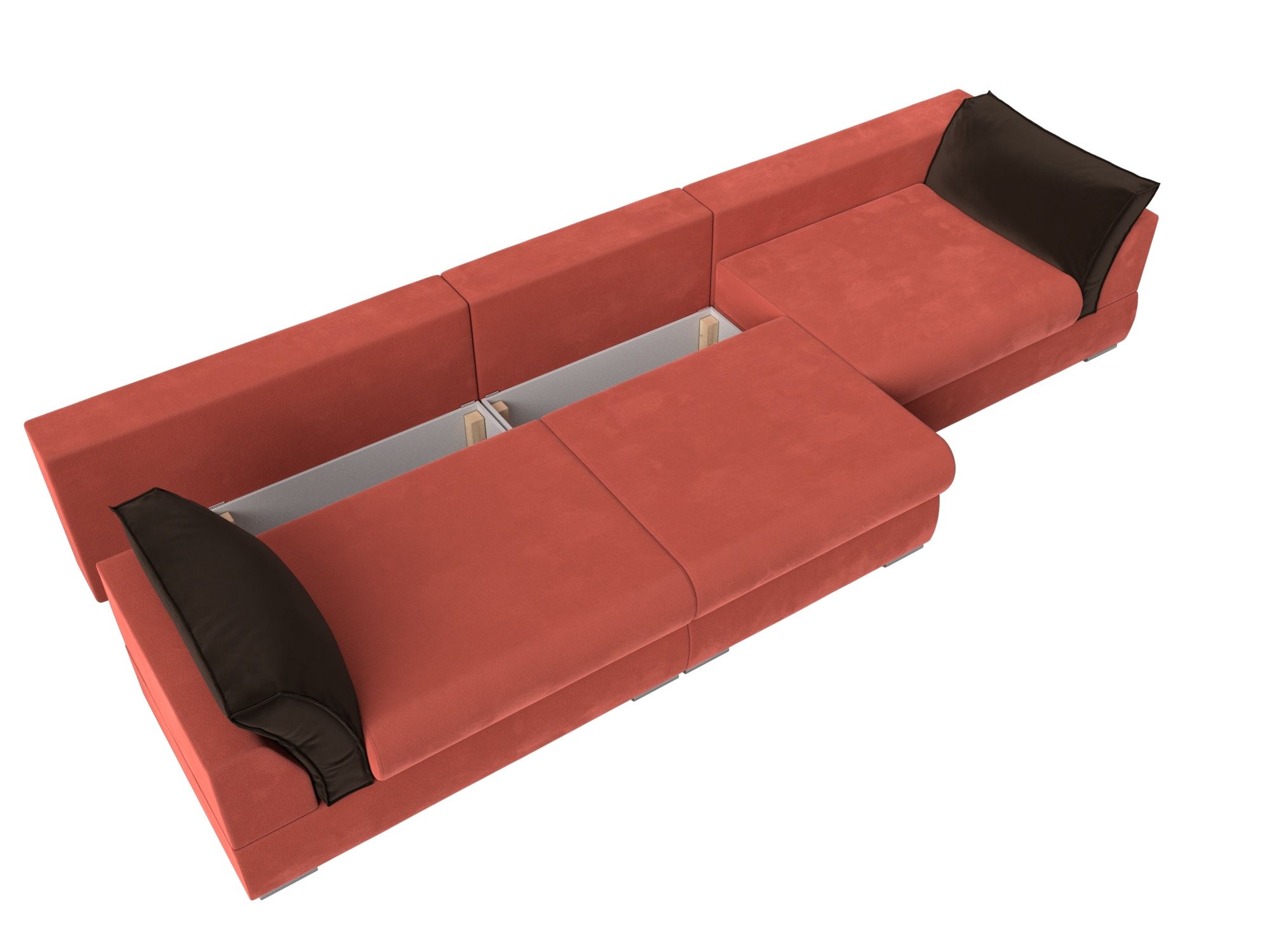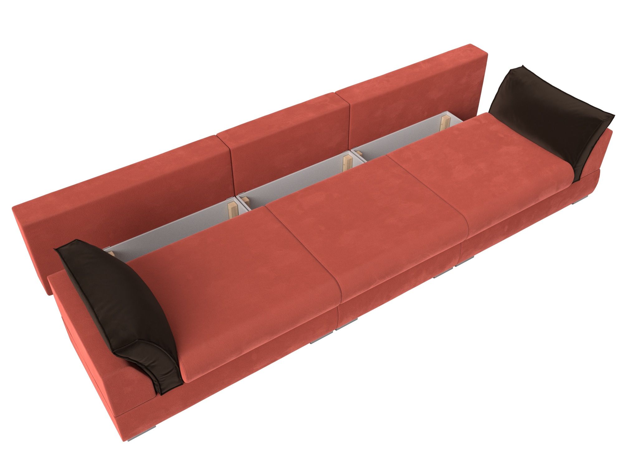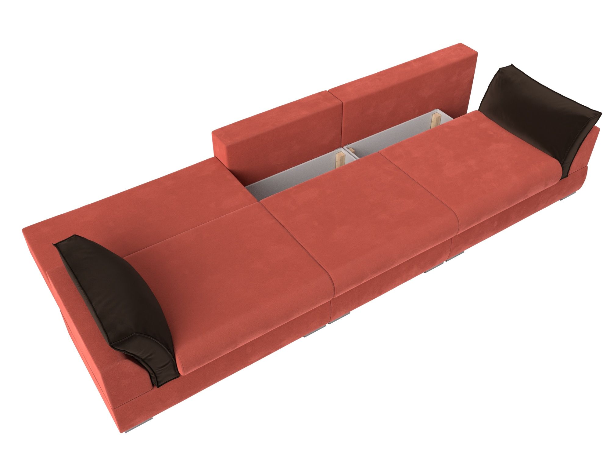 Отзывы о Столплит Прямой диван Пекин Long, микровельвет Коралловый/Коричневый