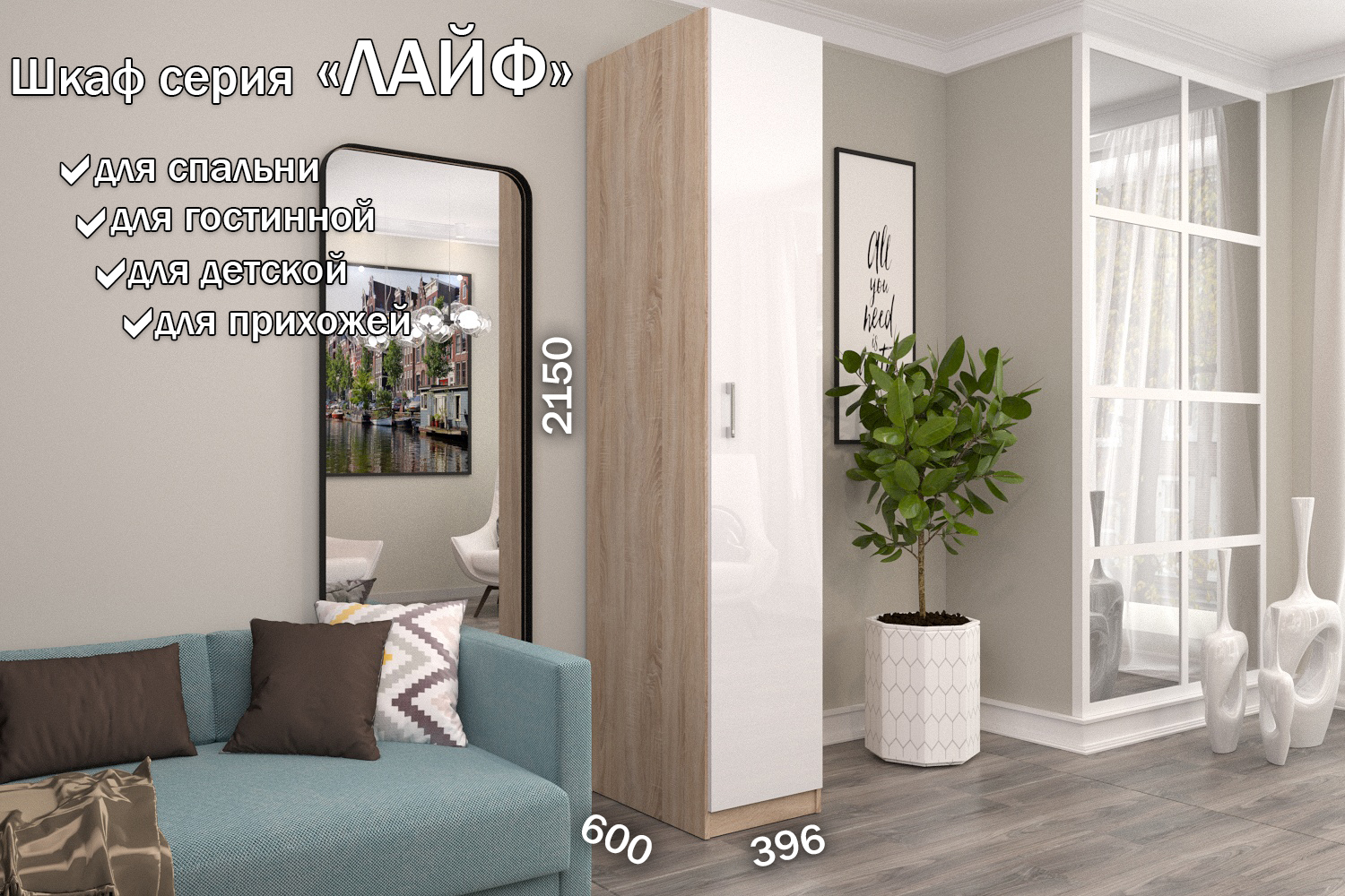 Отзывы о Столплит Распашной шкаф Лайф для одежды 40*60*215 Дуб сонома Белый