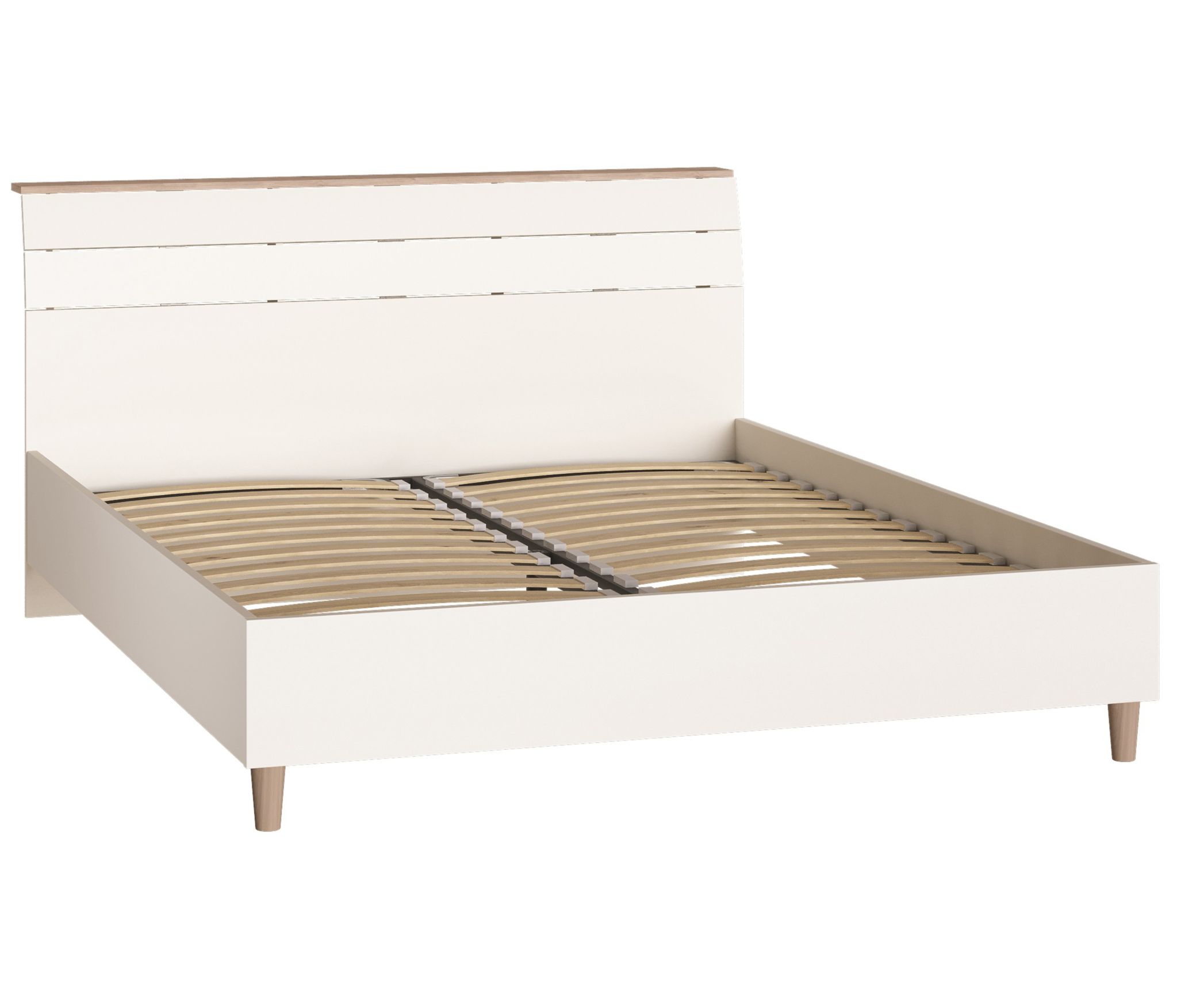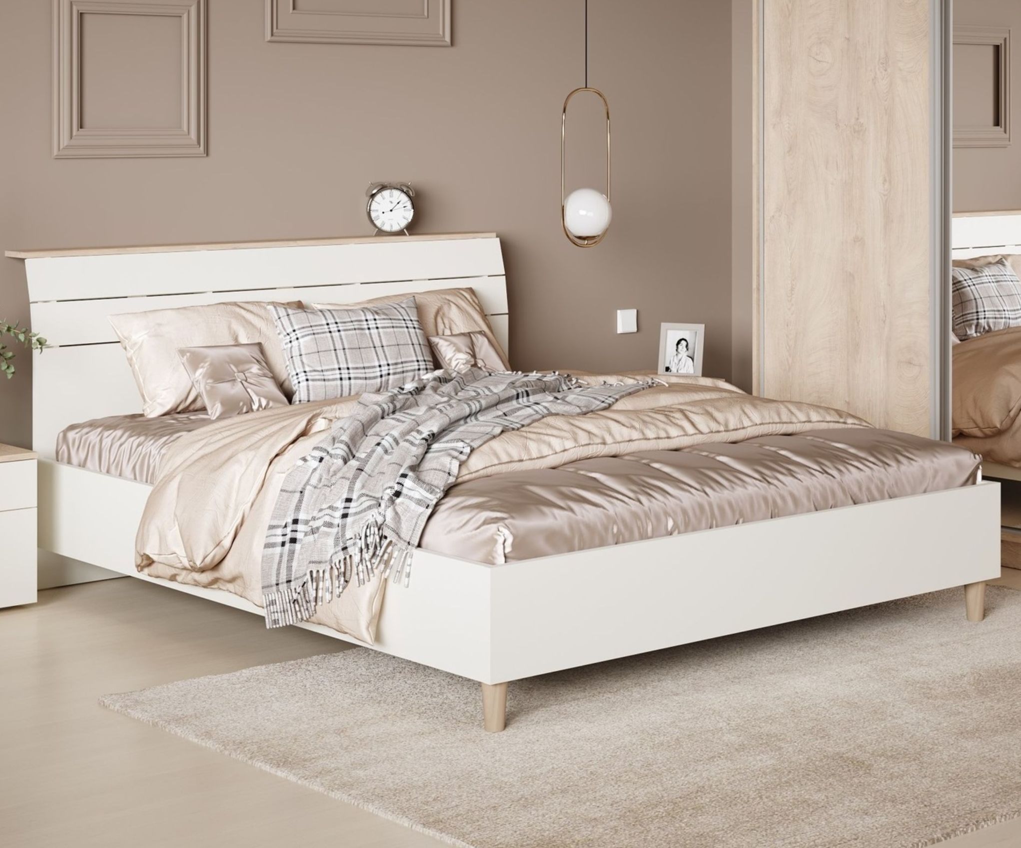 Кровать Муссон 11.41 Дуб Эндгрейн/Белый практичный вариант для современной спальной комнаты.