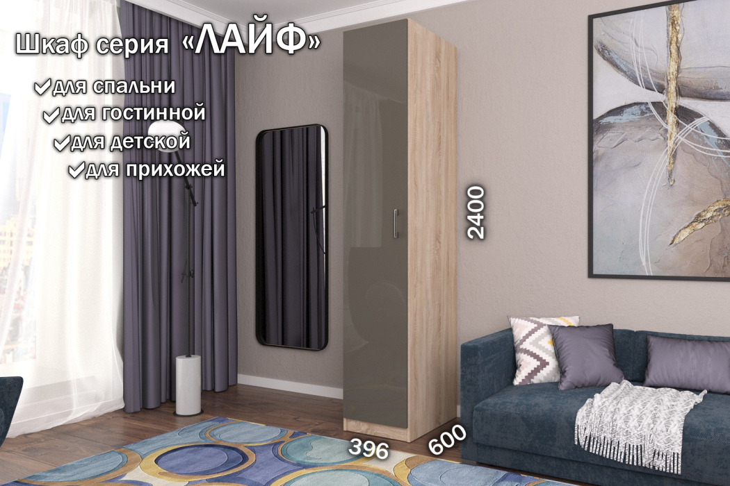 Отзывы о Столплит Распашной шкаф Лайф для одежды 40*60*240 Дуб сонома Латте