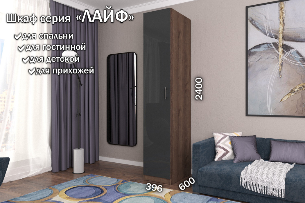Отзывы о Столплит Распашной шкаф Лайф для одежды 40*60*240 Дуб экспрессив Антрацит