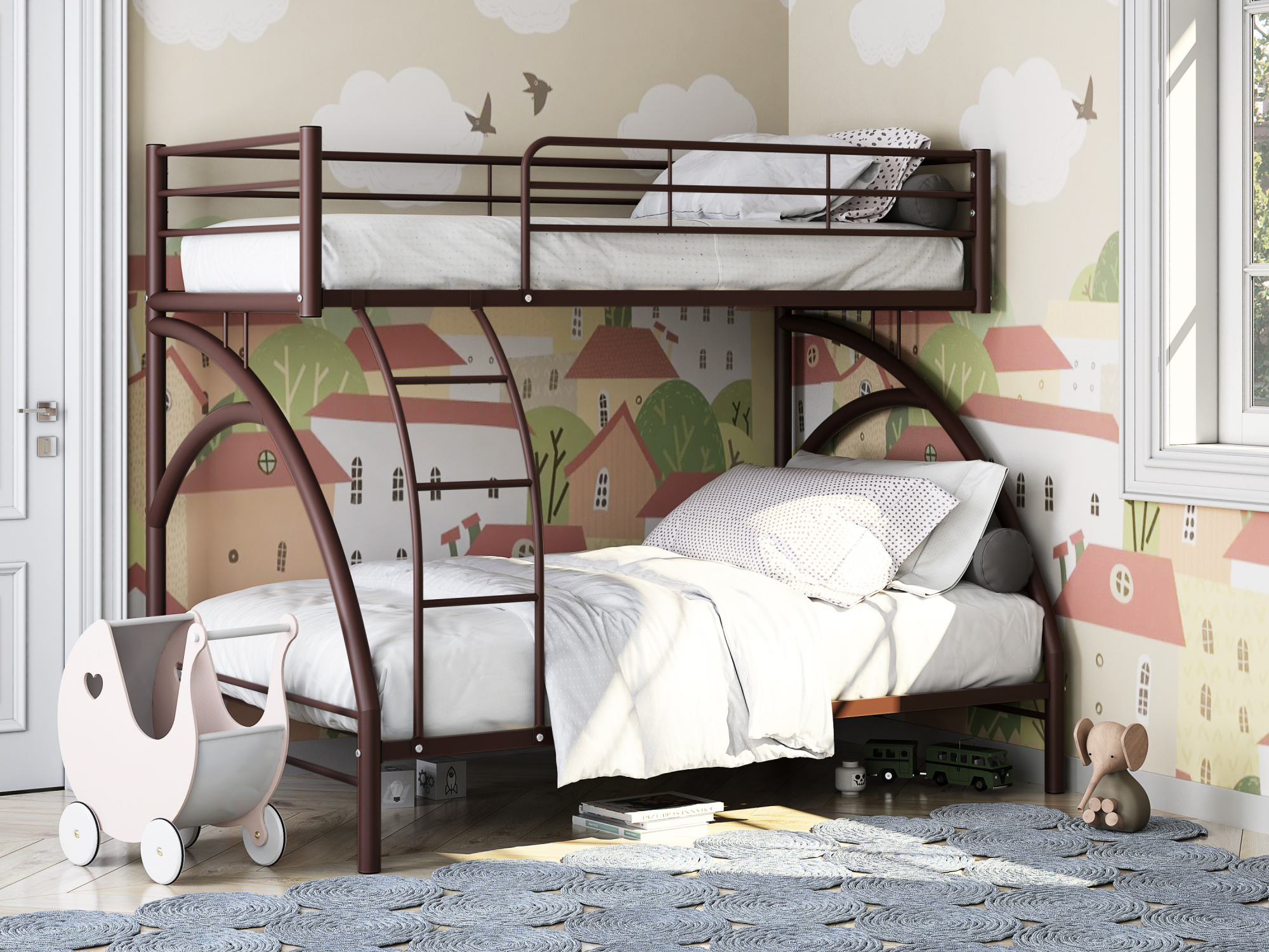 Кровать выполнена из металла с качественным порошковым покрытием. Облегченная конструкция нашей мебели позволяет сделать интерьер менее загруженным, что очень важно при формировании небольших пространств. Кровать выдерживает повышенные нагрузки на спальные места до 180 кг. Простота сборки сделает вашу покупку еще приятнее. спальное место верхнее 90*190, нижнее 120*190.