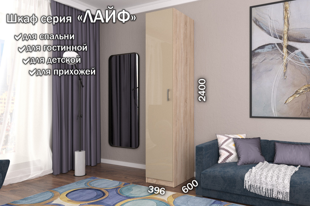 Стильные и удобные корпусные шкафы и наборные корпусные элементы «Лайф» – одно из самых выгодных предложений серийной мебели. Уникальностью данных шкафов, является возможность вносить изменения при сборке. Внутренние детали крепятся на эксцентриках, что позволяет в момент сборки изделия менять секций местами, это дает возможность выбрать максимально удобное расположение. Отличительные особенности шкафов «Лайф» – качественные материалы, удобная комплектация внутреннего наполнения и отличная фурнитура, которая обеспечивает долговечность использования и дает простоту и надежность сборки. Данная серия может комбинироваться в любых четырех цветах на корпус изделия и в любых четырех цветах на фасады изделия на усмотрение и вкус покупателя. Используемые цвета корпуса: Венге, Дуб Сонома, Дуб Экспрессив бронзовый, Северное дерево. Используемые цвета на фасады изделия из материала МДФ Высокий глянец: Белый Бриллиант, Латте, Макиато, Антрацит