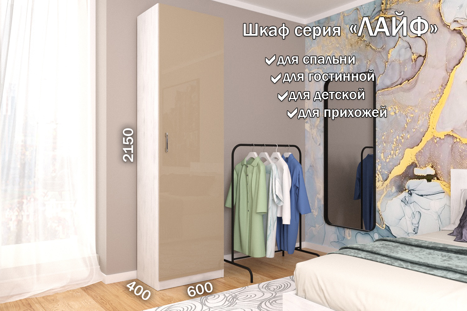 Стильные и удобные корпусные шкафы и наборные корпусные элементы «Лайф» – одно из самых выгодных предложений серийной мебели. Уникальностью данных шкафов, является возможность вносить изменения при сборке. Внутренние детали крепятся на эксцентриках, что позволяет в момент сборки изделия менять секций местами, это дает возможность выбрать максимально удобное расположение. Отличительные особенности шкафов «Лайф» – качественные материалы, удобная комплектация внутреннего наполнения и отличная фурнитура, которая обеспечивает долговечность использования и дает простоту и надежность сборки. Данная серия может комбинироваться в любых четырех цветах на корпус изделия и в любых четырех цветах на фасады изделия на усмотрение и вкус покупателя. Используемые цвета корпуса: Венге, Дуб Сонома, Дуб Экспрессив бронзовый, Северное дерево. Используемые цвета на фасады изделия из материала МДФ Высокий глянец: Белый Бриллиант, Латте, Макиато, Антрацит