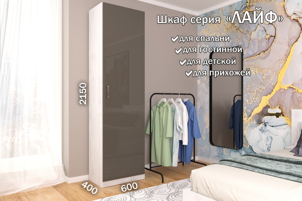 Стильные и удобные корпусные шкафы и наборные корпусные элементы «Лайф» – одно из самых выгодных предложений серийной мебели. Уникальностью данных шкафов, является возможность вносить изменения при сборке. Внутренние детали крепятся на эксцентриках, что позволяет в момент сборки изделия менять секций местами, это дает возможность выбрать максимально удобное расположение. Отличительные особенности шкафов «Лайф» – качественные материалы, удобная комплектация внутреннего наполнения и отличная фурнитура, которая обеспечивает долговечность использования и дает простоту и надежность сборки. Данная серия может комбинироваться в любых четырех цветах на корпус изделия и в любых четырех цветах на фасады изделия на усмотрение и вкус покупателя. Используемые цвета корпуса: Венге, Дуб Сонома, Дуб Экспрессив бронзовый, Северное дерево. Используемые цвета на фасады изделия из материала МДФ Высокий глянец: Белый Бриллиант, Латте, Макиато, Антрацит