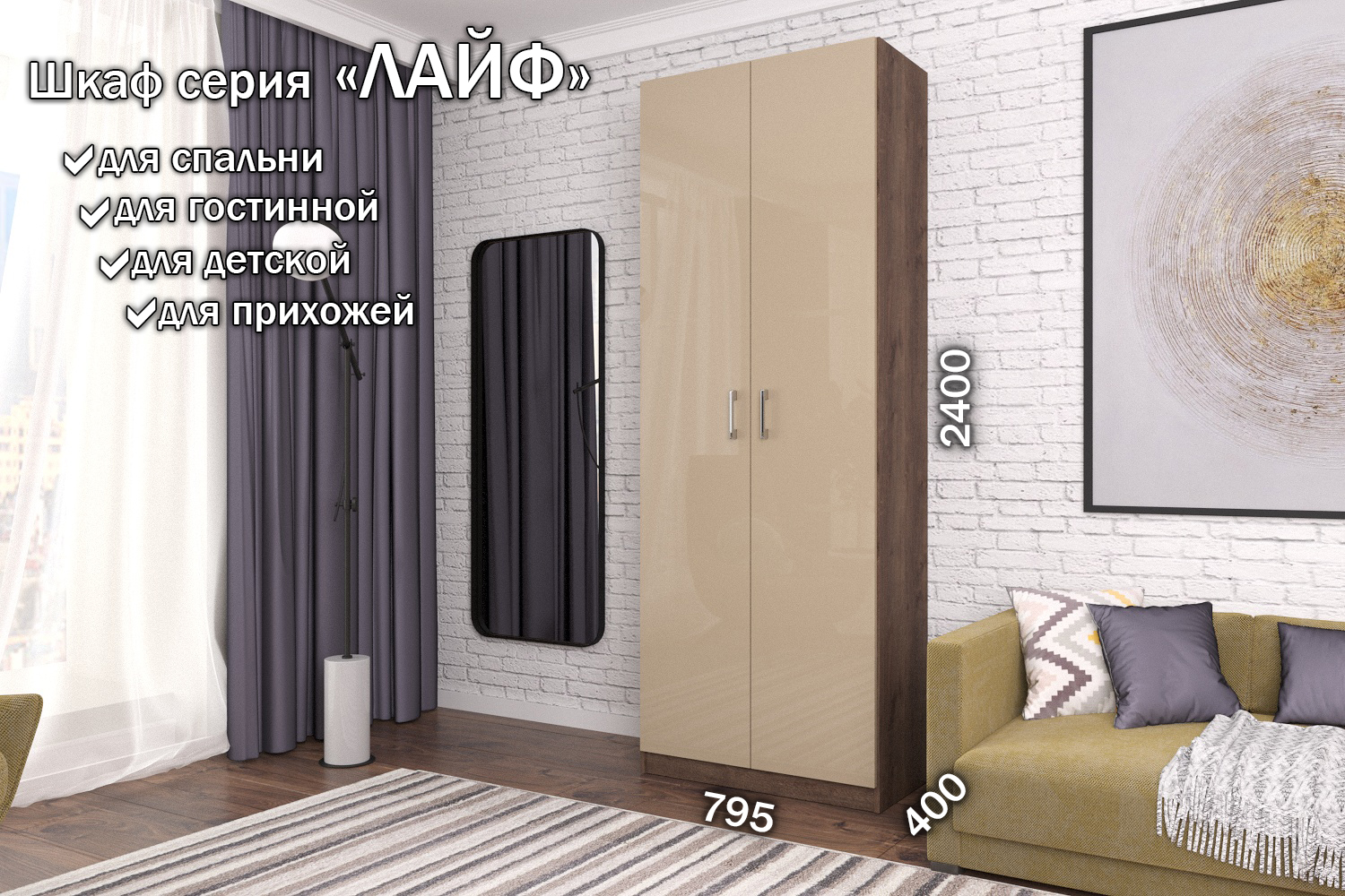 Распашной шкаф Лайф для одежды 80*40*240 Дуб экспрессив (Бежевый)