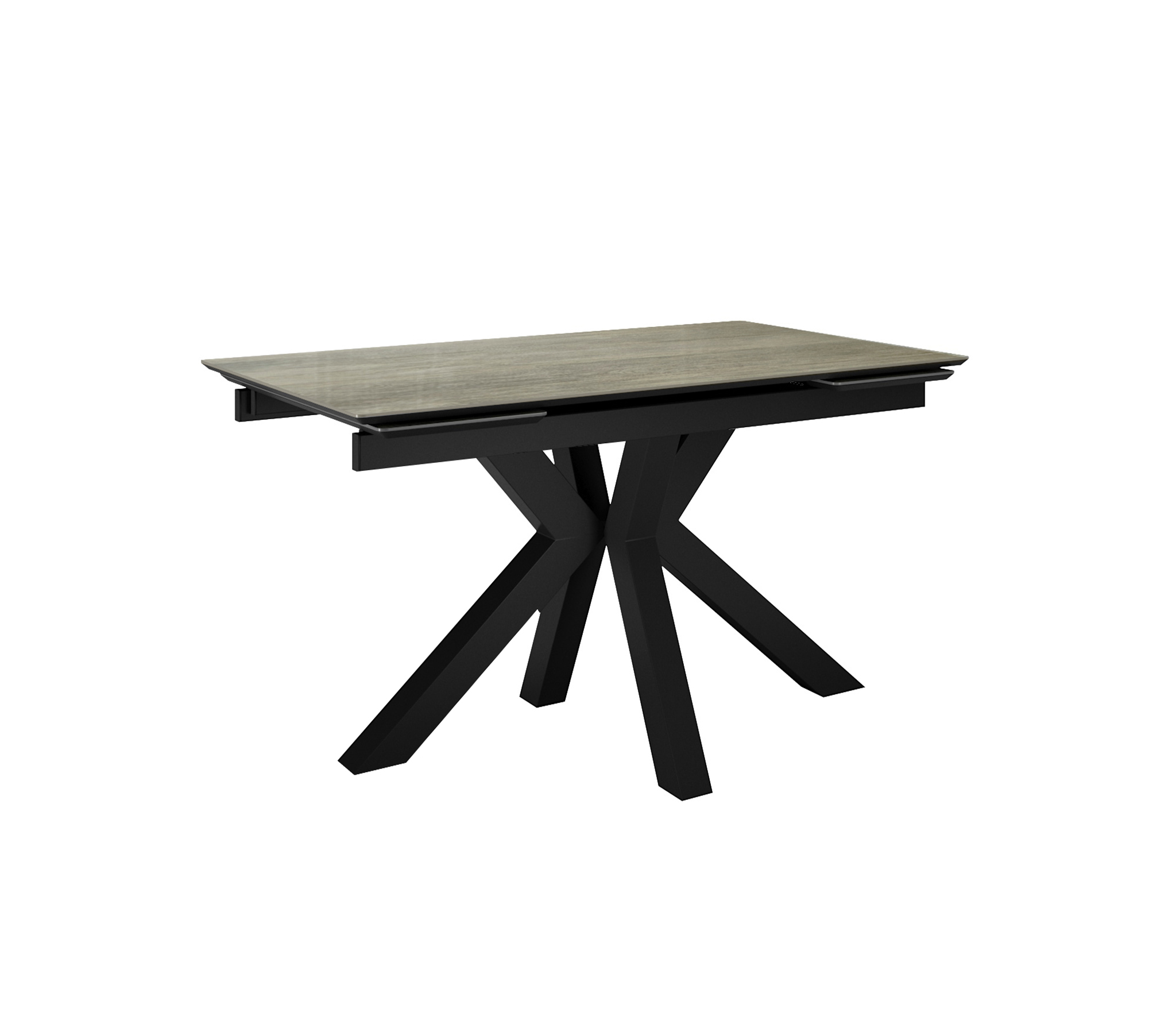Стол с керамической столешницей - смотрится элегантно за счет тонких линий в конструкции подстолья и столешницы.