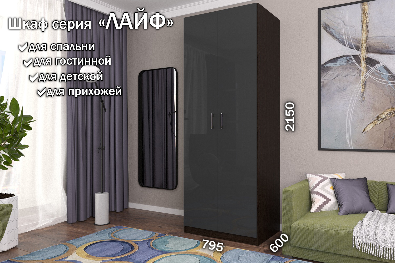 Отзывы о Столплит Распашной шкаф Лайф для одежды 80*60*215 Венге Антрацит