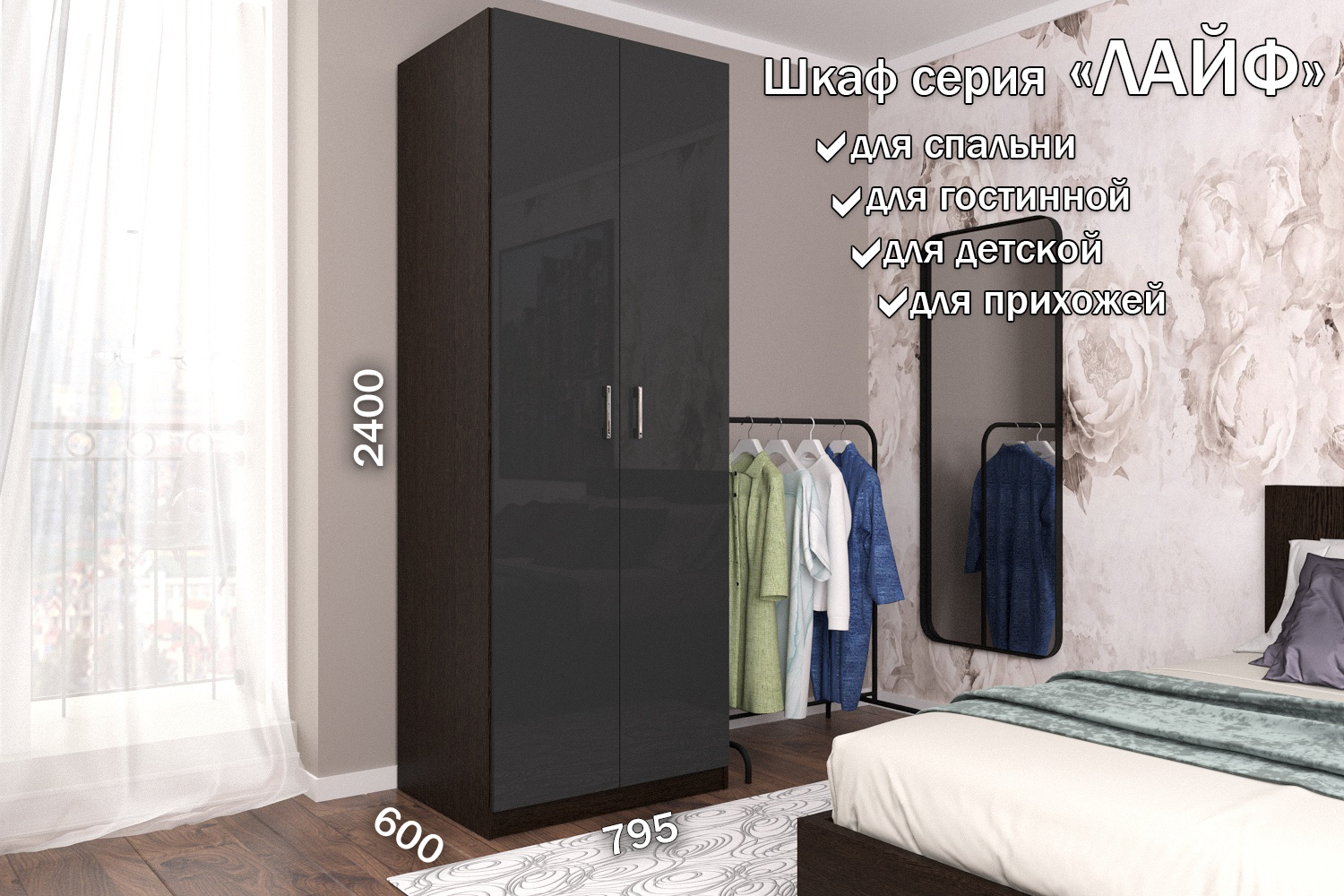 Отзывы о Столплит Распашной шкаф Лайф для одежды 80*60*240 Венге Антрацит
