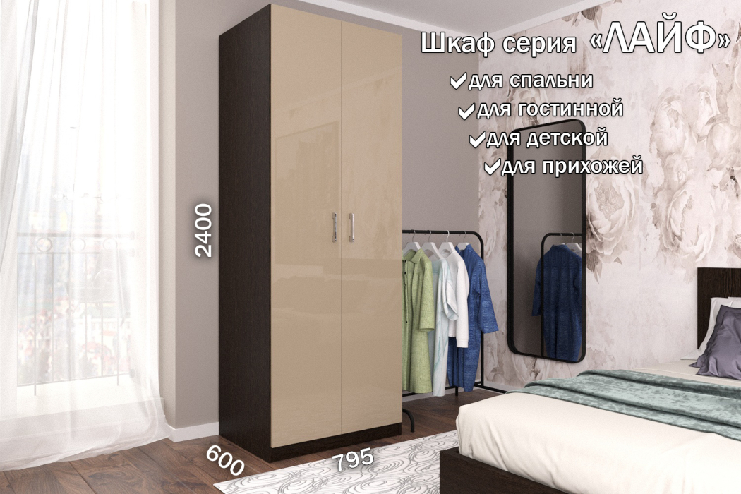 Распашной шкаф Лайф для одежды 80*60*240 Венге (Бежевый)